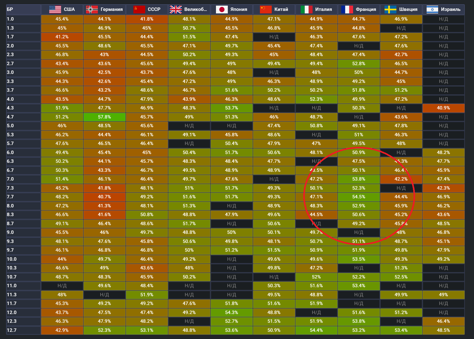 >>50737108 >>50737071 Вот так выглядит 3 года нерфов и рашин биоса, без слез не вглянешь, а ведь раньше была играбельная нация. Даже на 8.0 было 49 винки лол.