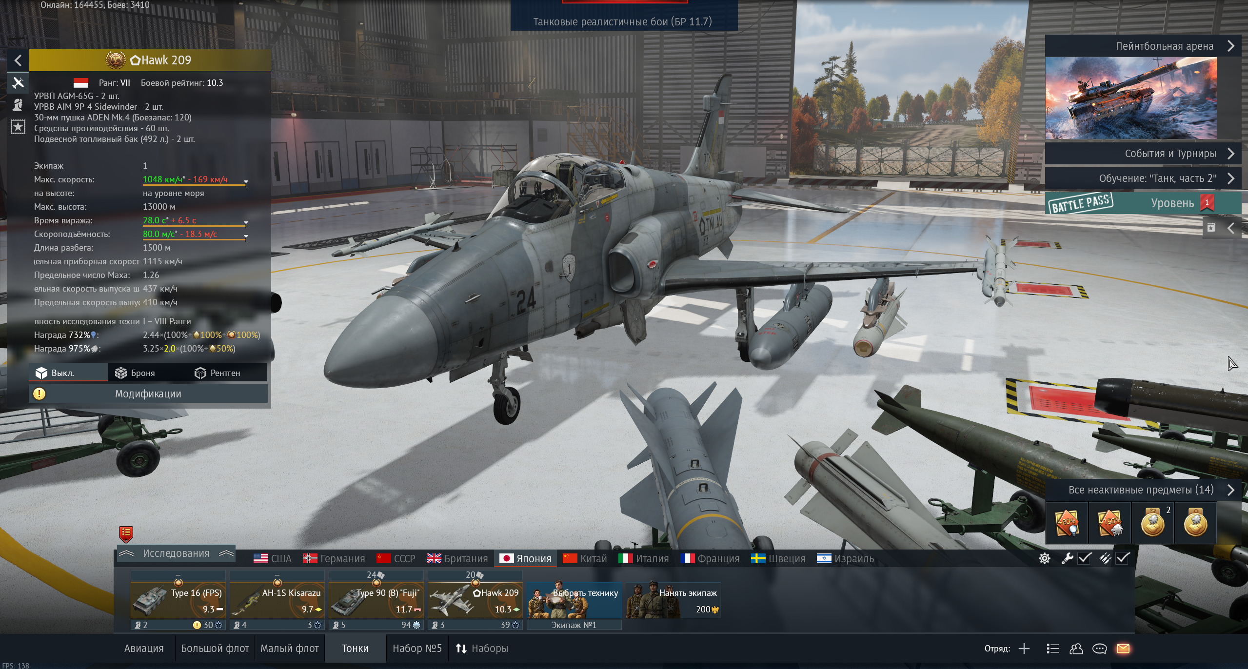 >>50731932 Так в этот раз от 8.3 бр можно играть, просто два самолета любых надо и все с этого бр. Топы не обязательно. Ф104 норм в лобовые ходить, пушка хорошая. >>50731935 Грипен Е да нагибает, у меня его нет, я на Рафале летаю, Еврофайтера тоже пока нет. Бесит что у Грипена нихуя нет затяжеления рулей, он летает мах 1.05 и сохраняет всю маневренность как при низких скоростях, пидорский самолет. Но Хорнетам, Ф-16, Еврофайтерам и прочей мрази Рафаль вполне ещё может насовать даже после нерфа. У Су 30 все печально, вообще мало их видел в играх. В принципе на топах играть легко, у тебя есть баллистический вычислитель, просто захватываешь нашлемом и появляется маркер куда стрелять. На еврофайтере и рафале пушки кал, БК смешной. Но пушки не решают если есть лтх, да и даже позорного БК Рафаля хватает на 7 фрагов без перезарядки если короткие очереди выдавать.