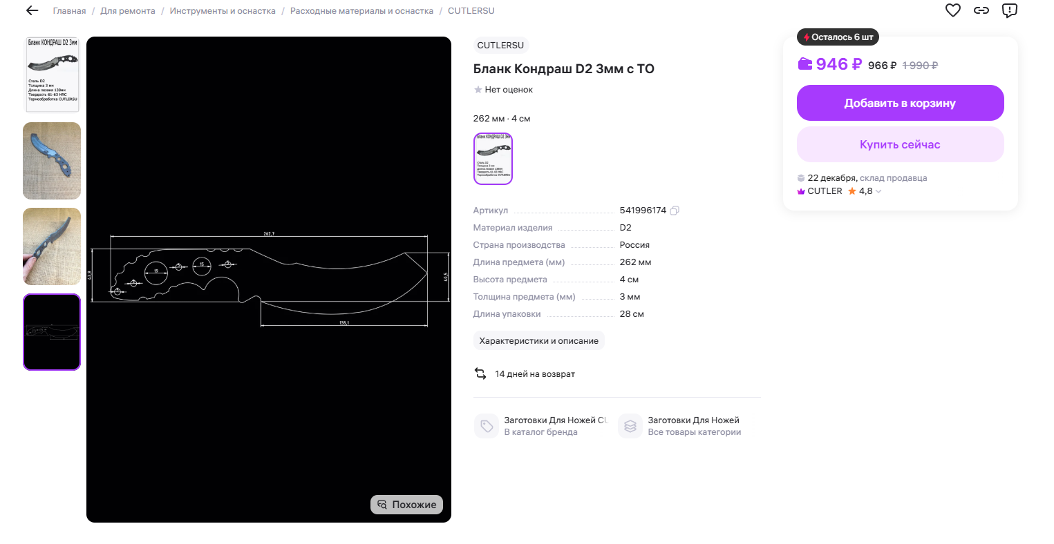 >>1001233 >>1001258 >>1001274 Сам прорекламировал нахаляву. Ассортимент и правда интересный, особенно не бланки, на которых ещё хз как и чем спуски делать, а отслесаренные незаточенные заготовки.