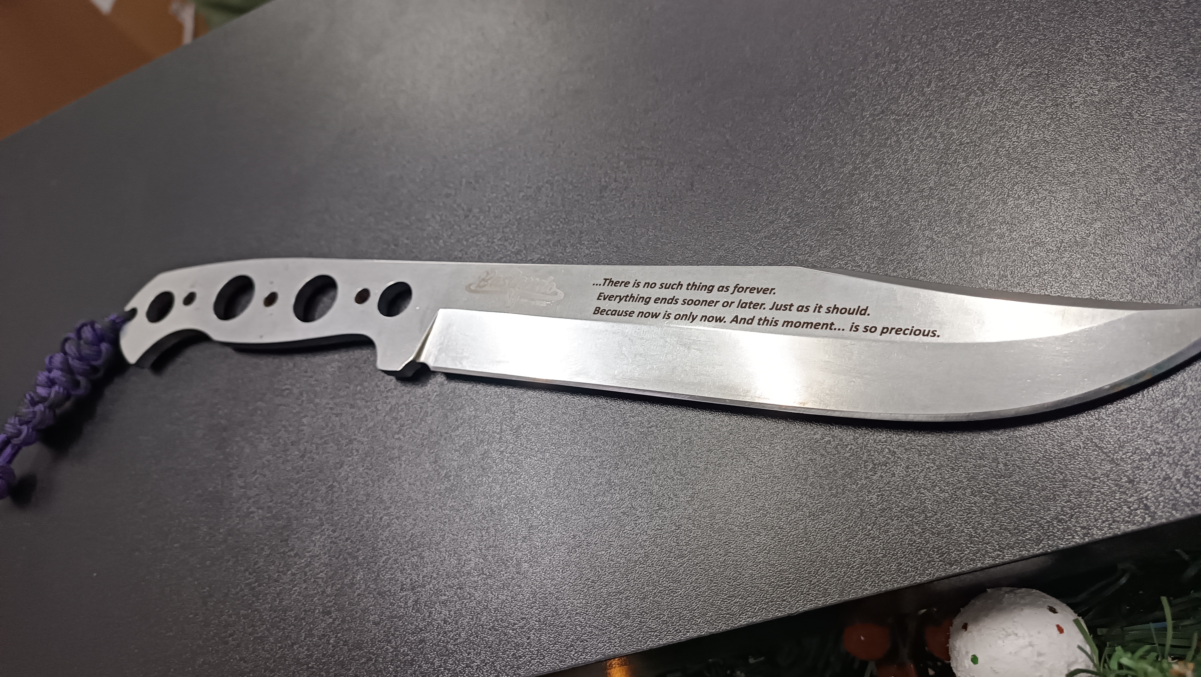 >>1000622 >Заебись сделал. Еще не все, осталась только гравировочку нанести и будет готово полностью. эскиз уже готов, хотелось детальней, но гравировщик сказал, это максимум что можем. >А нож популярен Я так посмотрю, да. Но в ролике лажа из 420-ой. Мой слейпнир после трех поваленных берез (10-15см) до сих пор бреет. Заточил на 38 полных.