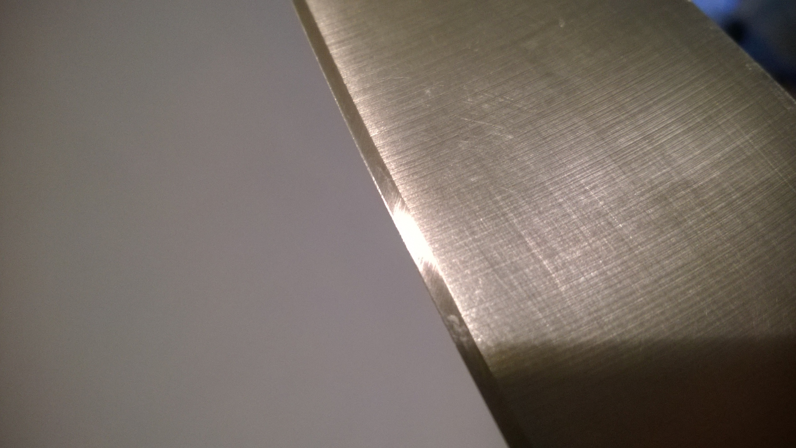 >>1001043 >Заточи мне на костыле американ танто с разным сведением, чтобы по линии рк было 40 градусов, а на более толстом кончике - 50. Я не он, но в чем сложность то? Вот я на костыле точил, углы примерно 45 и 55 град, сведение 0.3 и 0,5-0.6 мм на разных участках