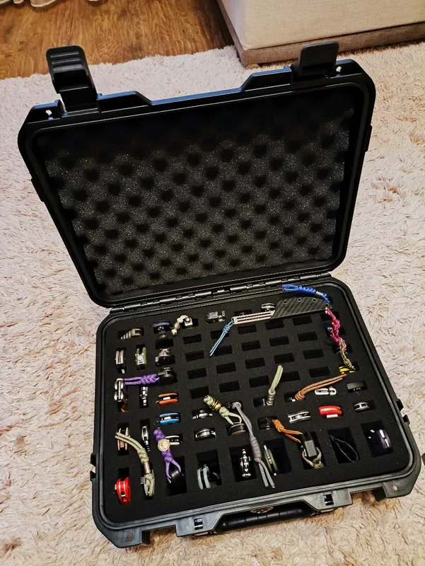 Изучил рынок кейсов. Все что продается с поролон с квадратиками, не сильно долговечное наполнение: перегородки отрываются, клипсы их повреждают и т.д. Размер квадратиком 12.5 мм в среднем, пример размещения для ящика с пика - расстояние по 2 квадратика, что бы перегодоки не рвались быстро. По идеи надо внутренности делать из вспененного полиэстера и вырезать. Все что с таким стоит много. Так что выбора и нет. Покупаешь с поролоном ,когда порвется делаешь из полиэстера, в теории есть фирмы которые его режут лазером.