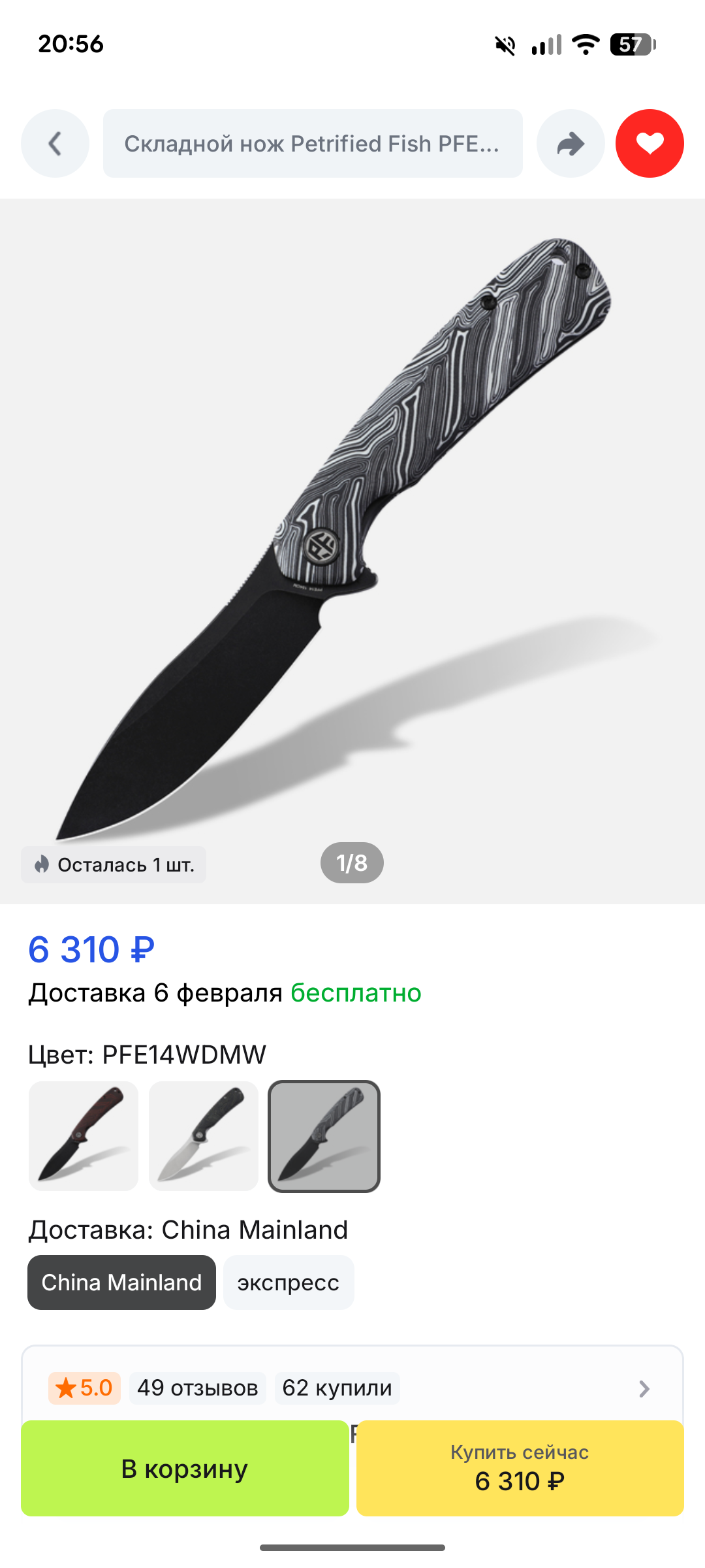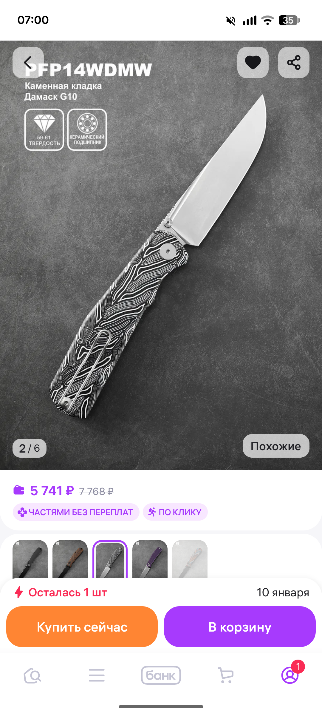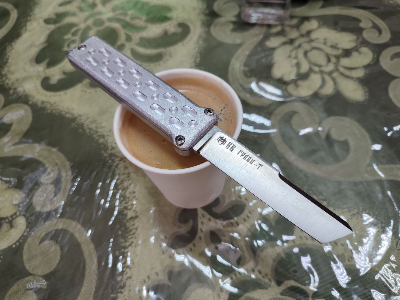 Заказал китайского ублюдка у нонейм продавца, который уже толи в бане алика, толи сам выпилился, за 1.2к лол. Думал наебалово, так как пуддинги делает буквально 2 компашки и стоит он 6+, да еще и в РФ не отправляют. Ждал что угодно в посылке, только не нож. А пришла годнота, звенит круче оригинала. Рукоять алюминий с наиприятнейшей анодировкой, 2 ряда керамика в осевом. А вот заточка я того китайца рот ебал, как будто точили во тьме об ступеньку подвала где делали этот нож. Но сведение мое почтение, меньше 0.2. У нас где-нибудь можно на заказ сделать клиночек за недорого? А то гуглю, везде только опт от 10+. Поставил бы алмазку и на едц:3 крайне приятный режек.
