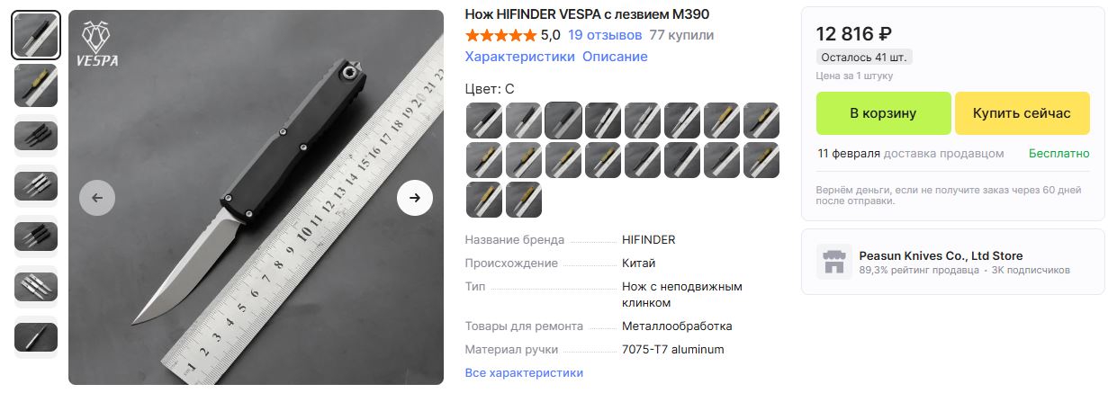 >>1002911 >О, это от ОК knives? Ага, они. >Тоже хотел взять у них, но они отказались отправлять, говорят и так на таможне задержали у них большую партию. Очень странная херня, ведь это абсолютно легальный спиннер. Если так рассматривать, у него даже поражающие свойства довольно сомнительные. Для меня это вообще не нож, а чисто спиннер-игрушка. Максимум открыватель упаковок, и то это куда приятнее делать кинжалом. Кстати, из-за этого многие фронталки идут 2 посылками в разобранном виде. Даже легальные ультратеки. >Как по стали на клиночке? вг10 или пиздят? ОК в пиздеже замечены не были. Заявлено VG10. Были тесты и с М390, вроде +/- норм. От себя могу сказать что проверял твёрдость, и заявленных 63 HRC там было.