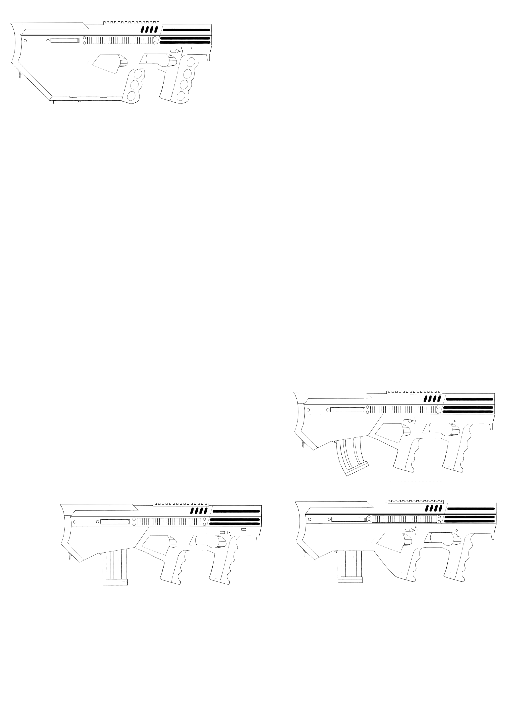 >Алсо, дырки под пальцы не нужны, и выглядят уебищно. Передняя рукоятка так близко тоже, я считаю, не нужна Знаю, я всё думаю как визуально это сделать лучше, завтра вкину черновые варианты, на которых ещё нет дырок. >Да и вообще, раз уж у тебя такой ебовый хайтек, что снайперская стрельба достигается всего лишь сменой ствола Можешь подробней расписать почему это не будет работать?