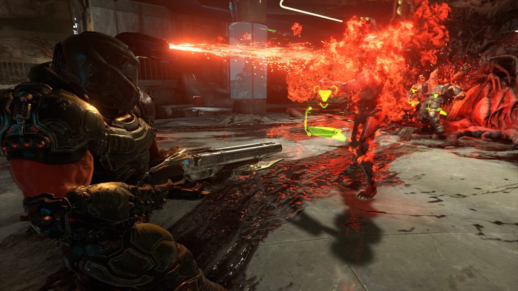 Корпус настолько большой, потому что содержит внутри себя микрокомпьютер и жидкостную систему охлаждения. На торце возле дула располагаются три встроенные лазерные указки в виде перевёрнутого равностороннего треугольника ' , ' а так же маленькая камера с различными датчиками, которые посылают сигналы микрокомпьютеру, который после обработки данных отправляет информацию на нейроинтерфейс метасолдата, указывая ему куда нужно стрелять. На крышке так же встроен счётчик патронов, который показывает боезапас в магазине и дублирует эту информацию на нейроинтерфейс.
