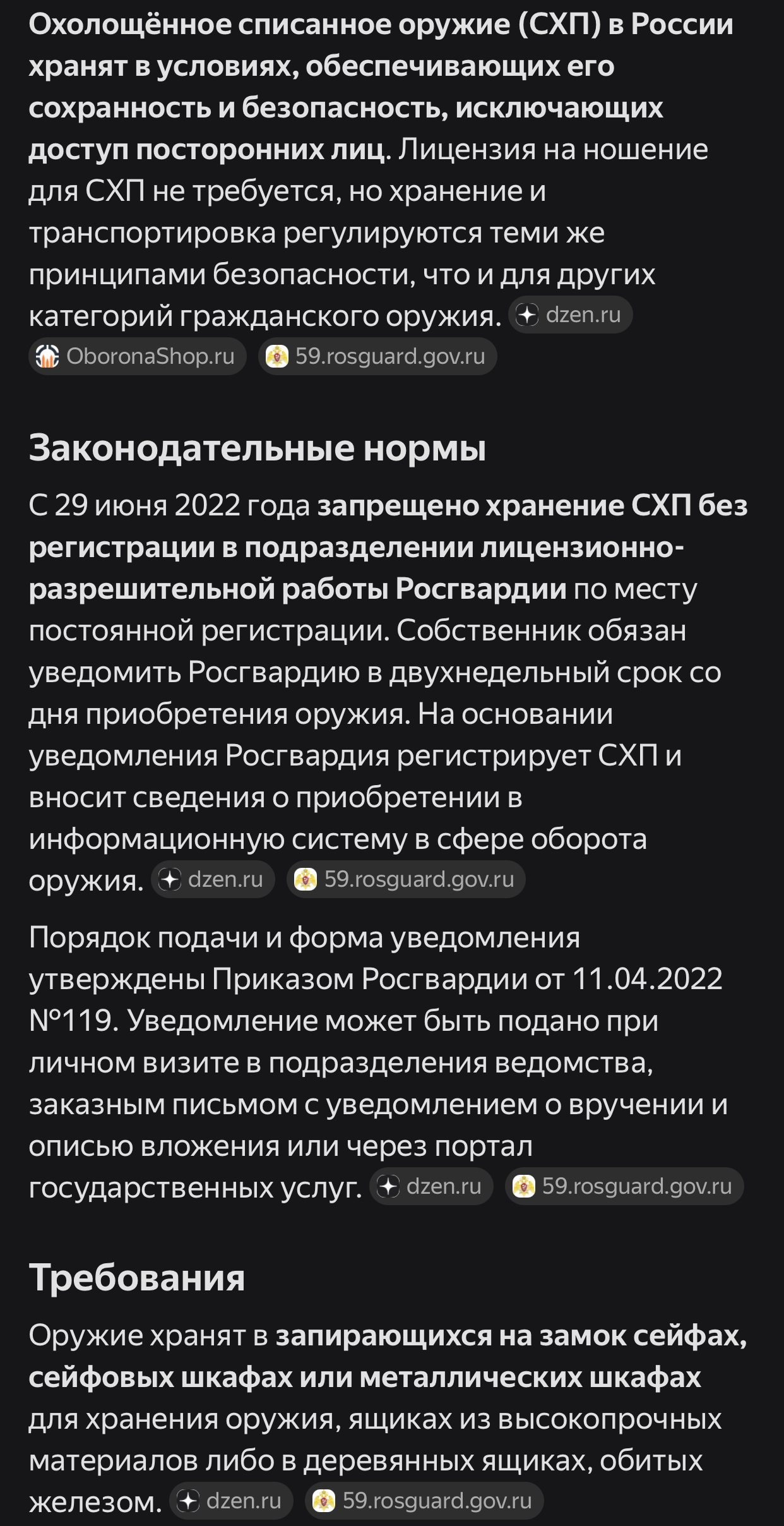 >>953984 Через госуслуги подаешь уведомление Получаешь ответ Пиздуешь в лрр и тебе дадут кусок А4 с печатью и подписью, что уведомление есть и номер такой- то Хранишь бумажку и сертификат к пукле как крайнюю плоть Бахаешь только в строго отведенном для этого месте, например в тире Зак Он гласит, что холощеное списанное является оружием и хранится должно в сейфе в металлическом шкафу с замками. Шароебится с ним открыто также возбраняется
