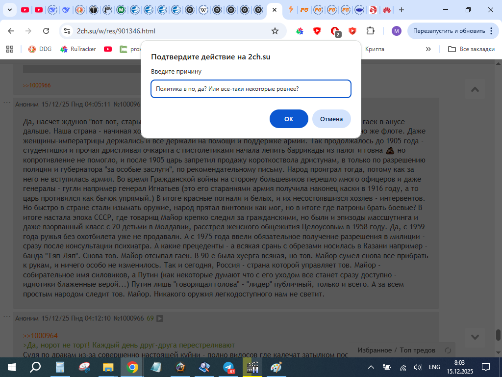 А если серьезно, то какие, близкие нам, кейсы раскручивания гаечек приходят на ум? 0)РФ, конец нулевых/начало десятых. Гос. заказ еще толком не поднялся, а гражданский рынок уже начал потеть нефтедолларами. Дальше медленное совращение вахтеров-нипущателей оружейными кабанами. 1)ЛДНР. Гражданская война, мама-анархия, 1000и1 спецназ у каждого ЖЭКа, в каждом селе свой атаман. Формально существующие власти не могли контролировать буквально ничего. Ну и разрешили регистрацию, для облегчения изъятия в будущем. Регистрацию, но не нормальную куплю-продажу... 2)Ельцинский ЗОО. С нарезью, помпами и газюками. Ситуация похожа на ЛДНР фактическим отсутствием государства. После совковой нищеты любой мент за 1000$ готов был не то что медленно моргнуть, он себе свой жезл в анус затолкал бы без смазки. Так что пусть уж лучше пролы возят спиртягу-сникерсы-компуктеры с тозиками, а не с АКСУ, и перепиливают зарегистрированные газюки, вместо того, чтоб добывать черные ПМы. Не можешь остановить? Возглавь, чтоб сохранить хоть какой-то контроль. - лозунг на все времена. 3)Прибалтийское отрицалово всего совкового. "Если в совке этот символ сакрален, то мы опустим его до сортира." До сортира, как в США, не получилось - грунт все еще фонил, но все равно успехи декоммунизации успели закрепиться до прихода Шваба. 4)ХХ съезд. Как усатого вытравили и ебыря его ебнули, так и подул свежий ветер перемен. Гладкоствольные гайки открутили до продажи ружей в хозяйственных, между керосинками и велосипедами. Во время застоя гаечки достали со склада и закрутили обратно. К сожалению склад оказался сухим - гайки не поржавели. Но хоть крепостное право отменили, в компенсацию.