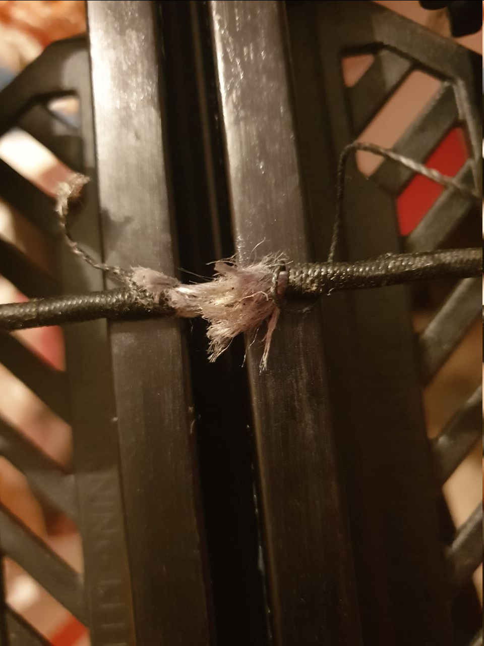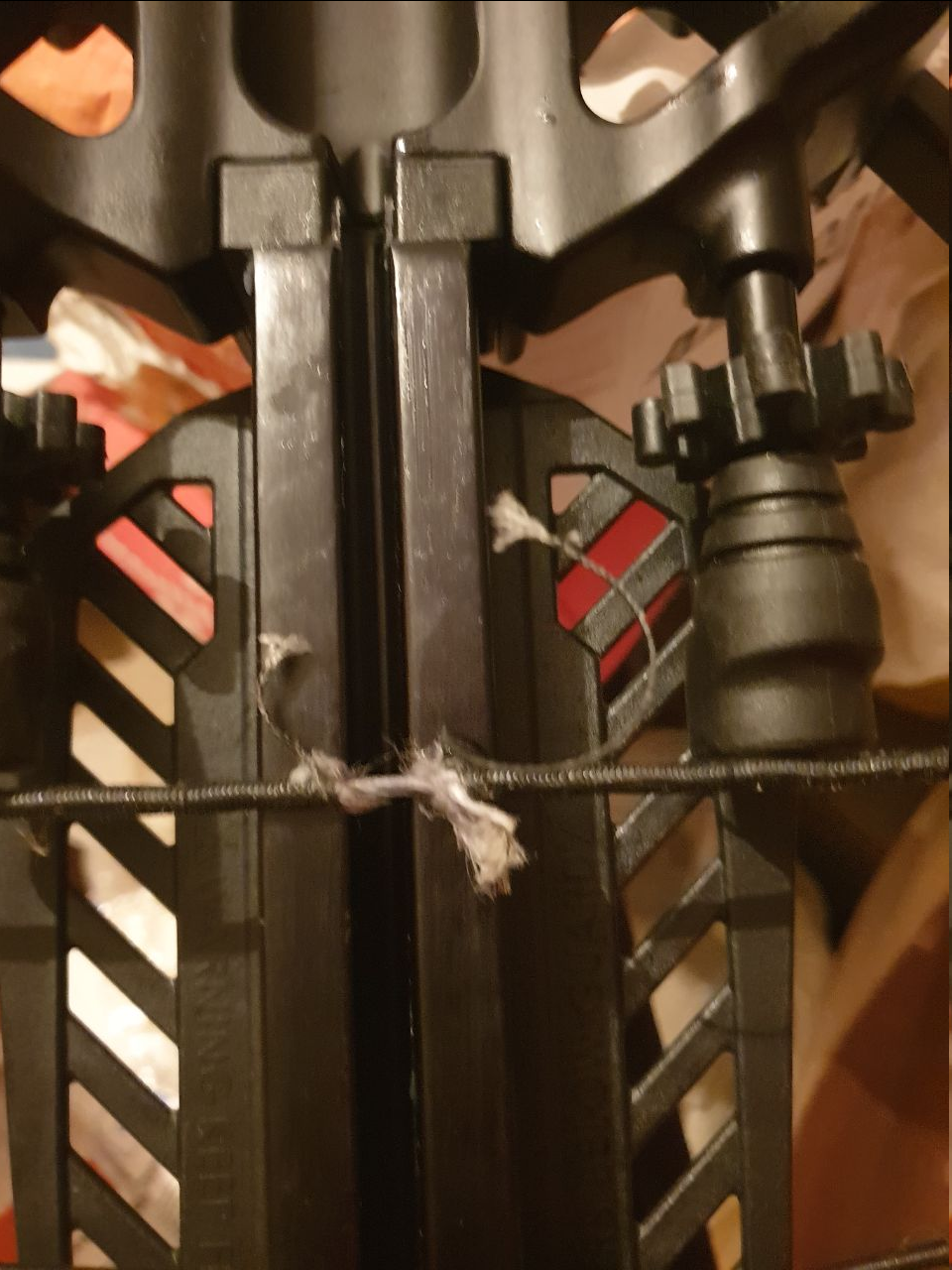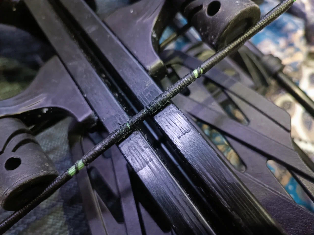После 50 выстрелов тетива стала вот такой. XB58. Что делать? Новую заказывать? Обмотку назад сдвинуть не получается, а в этих местах, где образовались проплешины, как раз крюки натяжителя идут.