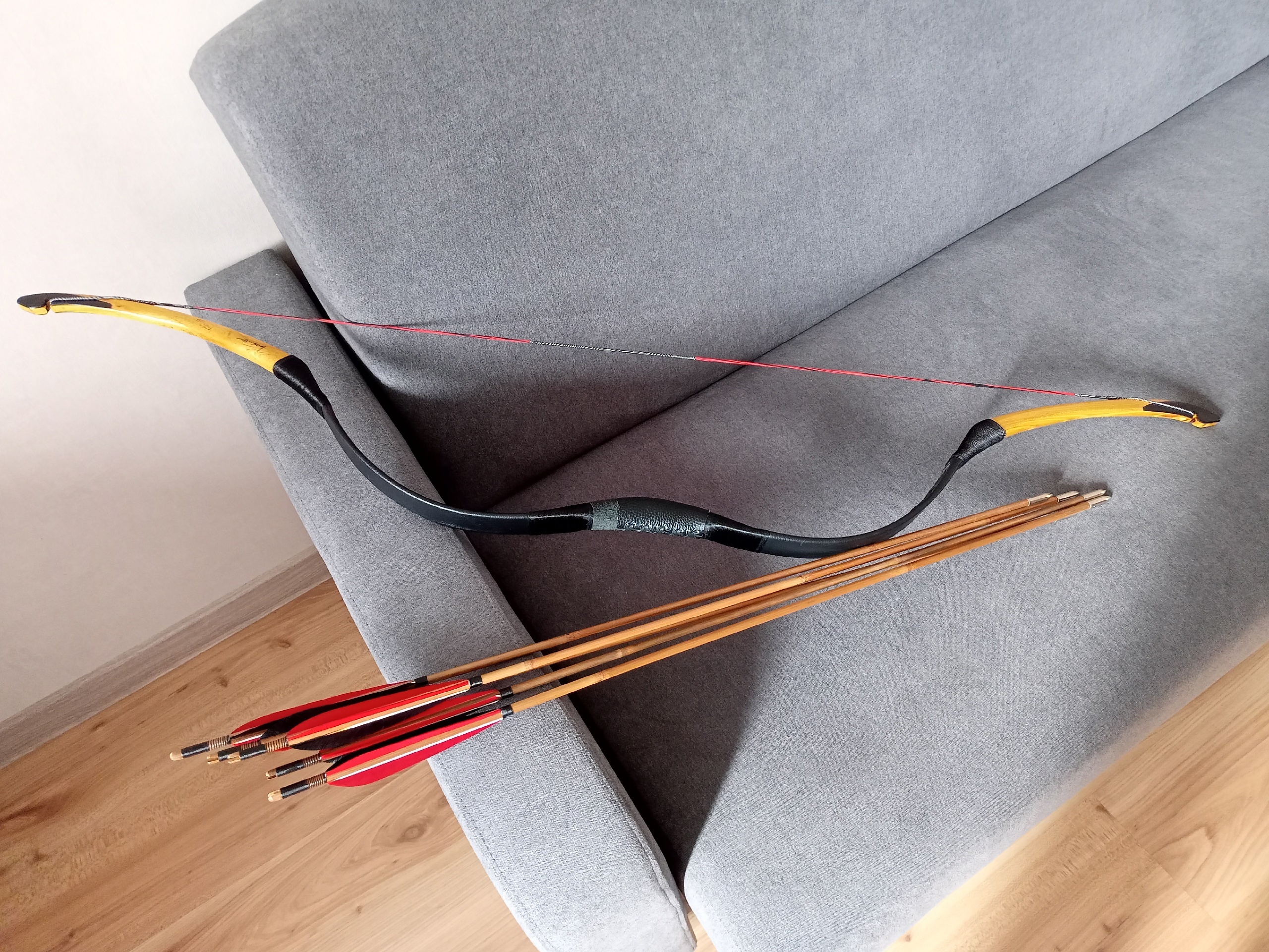 Но у меня дважды слетала тетива, я её дважды поднимал, а теперь изготавливаю самодельные стрелы. Надеюсь, у них развесовка не будет ронять тетиву опять. Впрочем, они получились потяжелее, чем карбоновые из магазина.