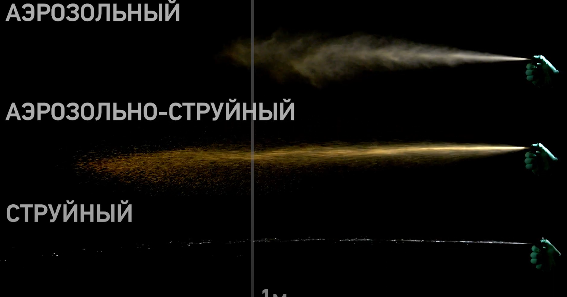 Сабж делится на 3 категории: -струйные (струя, которая далеко летит, ветром не сдувается, можно использовать в помещении, но хуй попадешь) -аэрозольные (облако, которым не нужно целится, но его легко сдувает и в помещении тебе пизда) -струйно-аэрозольные (середина между обоими)
