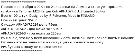 >>954992 Во-первых, это пелтонен. Во-вторых, лимитка, всего 100шт, таких больше не будет. В-третьих, по промокоду Мойдодыра €75, что дешевле WKL и берлоги, и почти в 2 раза дешевле овлкринжа. Конечно, есть нюанс, в РФ с ламнии не доставляют, а через перепуков выйдет совсем другая цена, но это не проблемы производителя или ламнии.