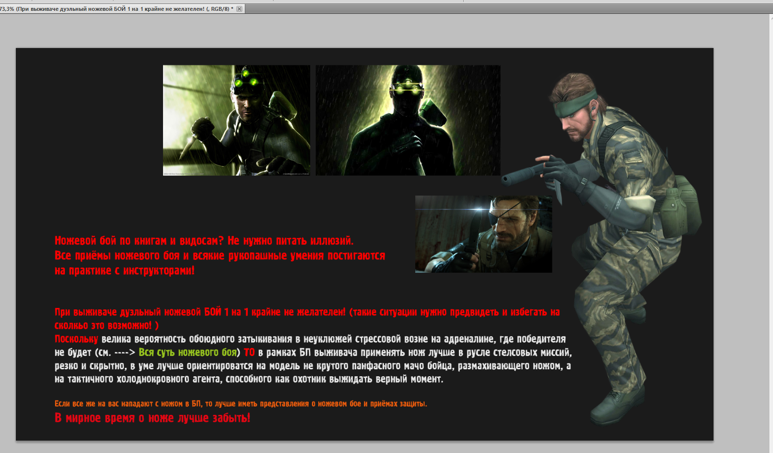 Скорей всего тему ножа в БП надо мыслить в сторону скрытного применения, а не ножевой дуэли, наверно разумней рыть в сторону партизанской темы, стелс, внезапность вот это вот всё... https://www.youtube.com/shorts/-IY-LmBx9M4 Если фантазировать, то примерно так будет выглядеть отжимания огнестрела (в фантазиях)