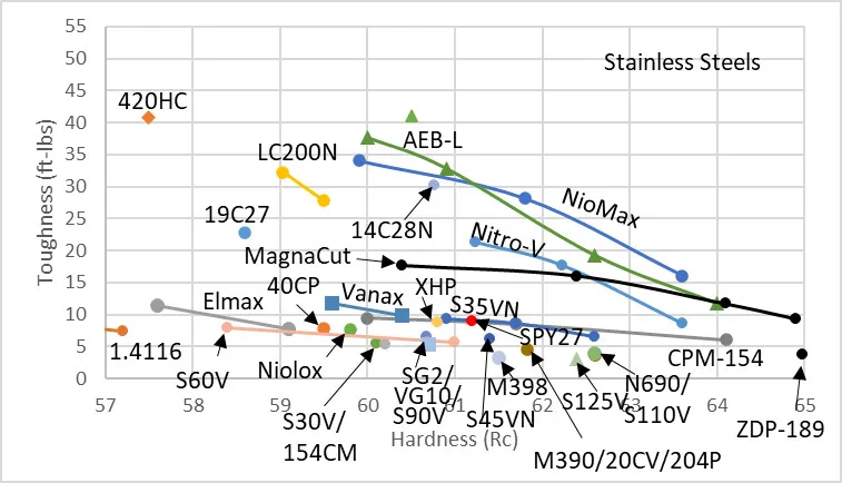 >>962098 Просто оптимум. Пик рилейтед. >>962099 Ммм, не густо, так-то. Кстати, я бы вот кухонный из AEBL/NitroV/14C28N в 60-61 HRC попробовал, но их тоже калят до 58-59 обычно.