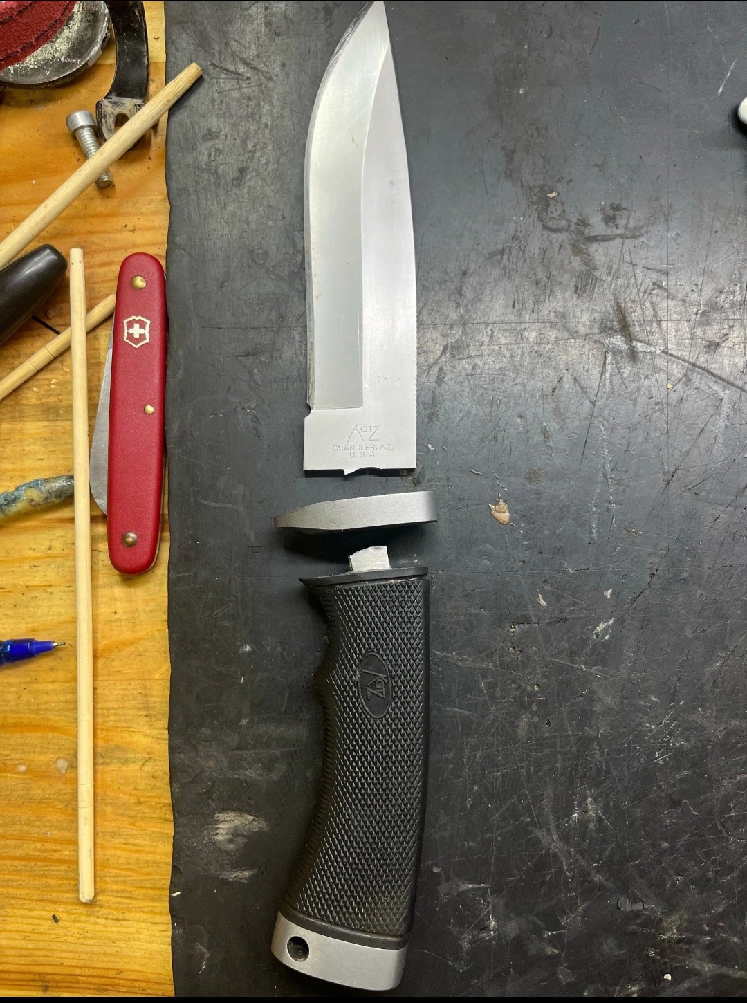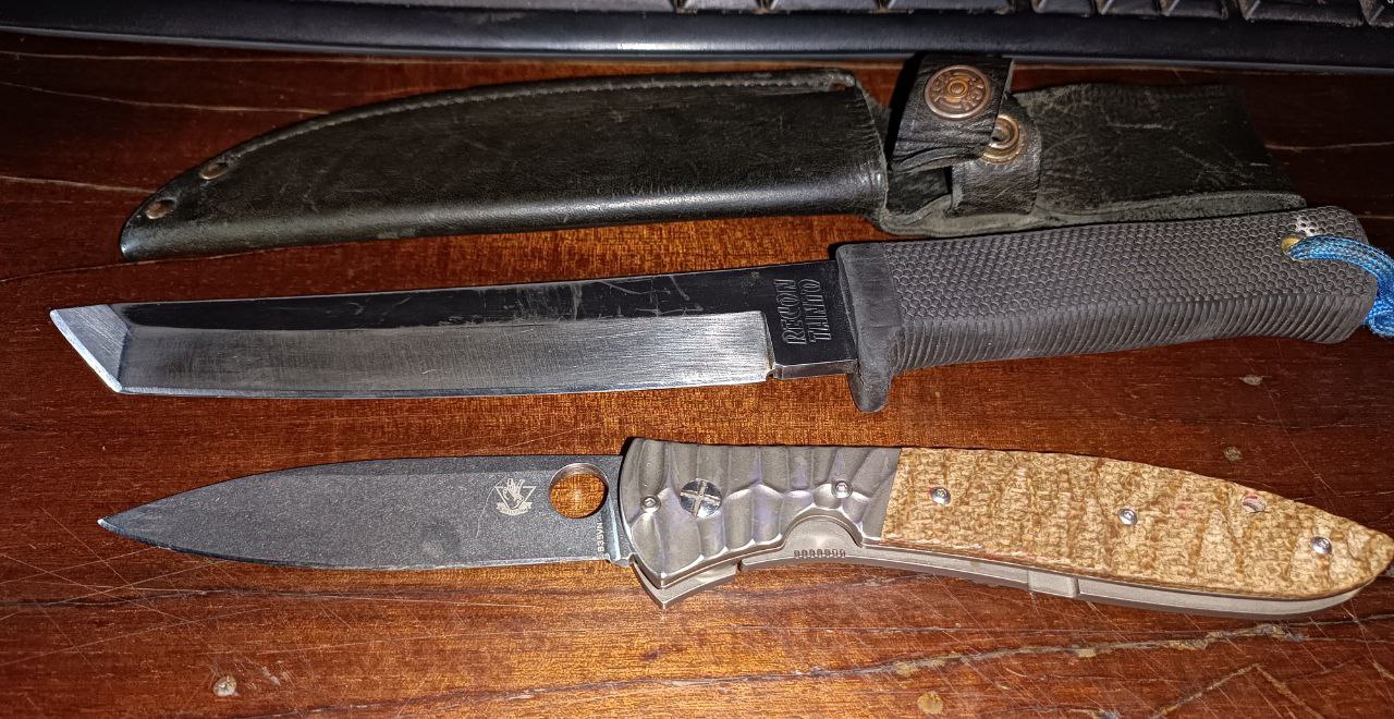 Вкачусь в тред со своим говном, что осталось, были всякие спайдерки, моры 2000, охотничьи кастомные итд, что-то терял, ломал, дарил... Первый (сверху) лежит тупо в коробке хз зачем его брал, с вторым иногда хожу в лес, третий использую как лагерник, когда на охоте или рыбалке, валяется в рюкзаке, по дереву рубит, строгает ваще класно это его прям стихия. Ганзо лежит в двери тачки (често не помню давно, нахер я его купил).Кастрированный китаец по мотивам бергрилза тоже тупо в коробке лежит, стилклавовская "спайдерка" , куплена вместо спайдерки которую потерял, иногда таскаю на кармане, иногда в бардачке, сейчас в прихожей в ящичке лежит, вскрываю ей всякие посылки и упаковки. Ну морка, иногда беру на рыбалку, но в основном там у меня филейный нож, так как я с Камчатки, а рыба у нас крупная, а так морка на кухне, сало с морозилки нарезает. Викторинокс, старый, такой по-моему сейчас не делают с такой кнопкой для лайнера, самый юзаный из всех ножей, прошëл огонь и воду, рыбалки, охоты, отрывалась плашка, клеил лактайтом, забивался песком и солью от морской воды что его хрен закроешь , а потом откроешь, реально неубиваемый нож, сейчас лежит в коробке с инструментами. Мелкий этот китаец, тупо для нарезания плюх, По-моему для этого и брался, случайно, больше я им ничего и не резал. Викторинокс с Красной ручкой использую на рыбалке, целая куча их у меня, с чëрной ручкой, я тралмастер, такие ножи используют на палубе рыбаки сейчас везде, серейторные, от амеров с нулевых годов пошла мода, ну другими данему и жилковые верëвки не порежишь. Есть ещё пару кастомных охотничьих, на даче.