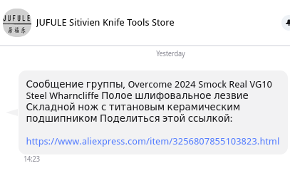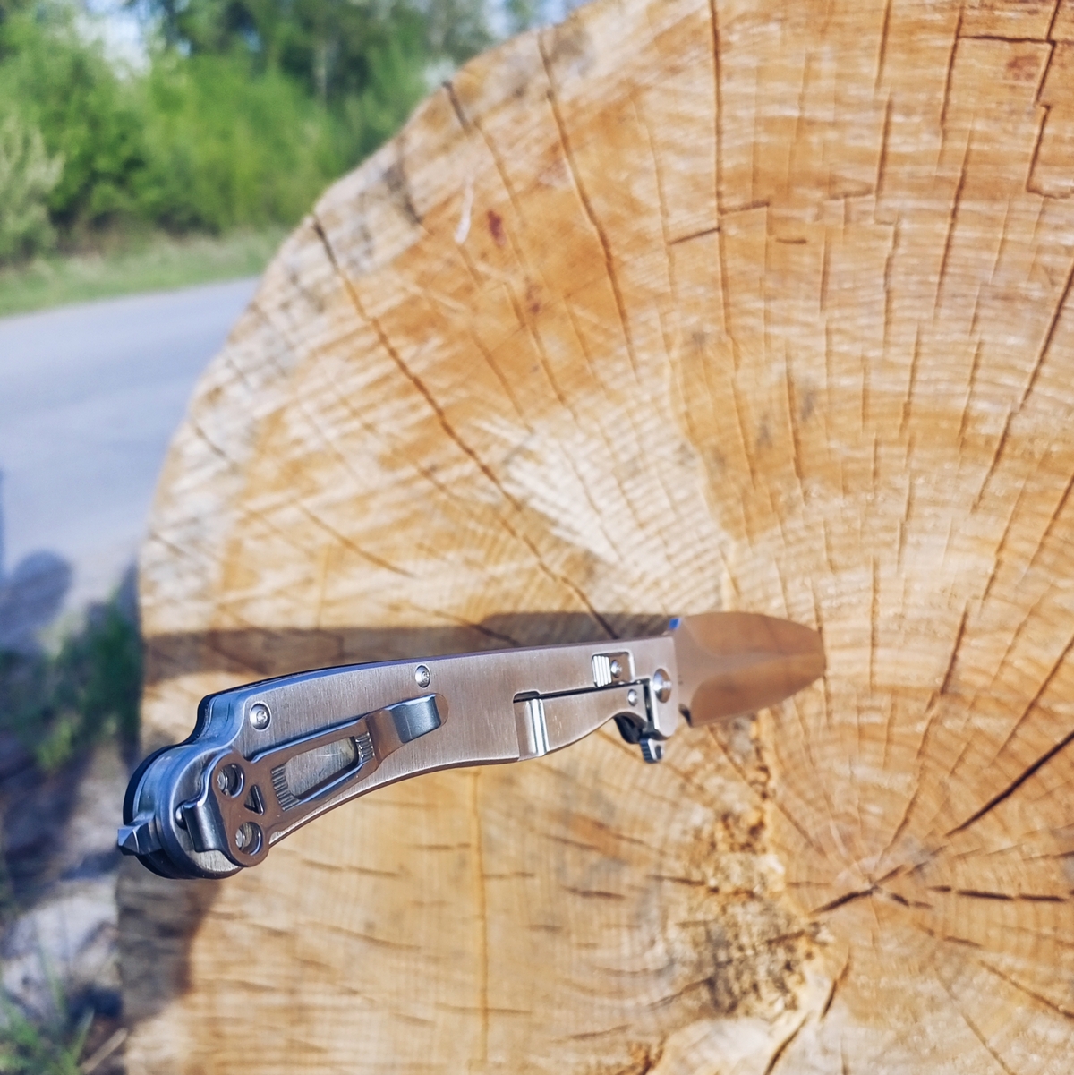 Недавно тут обсуждали gerber covert - складной AF. Так вот, Ляо (okknives) сделал реплику. Причем, крупной версии, 9см (оригинал был ещё мелковариант). Рукоять - анодированный люминь. https://aliexpress.ru/item/1005006836811729.html