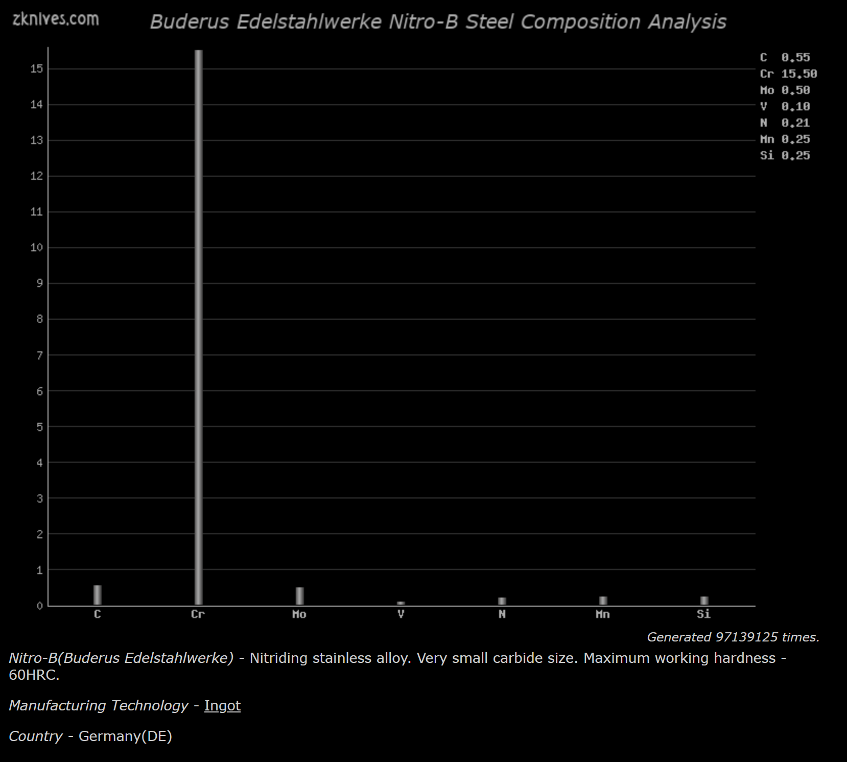 В рамках поиска "чтобы резала как нелегированная углеродка, но не ржавела на кухне", нашёл кухонные ножи из Buderus Nitro-B, азотистая среднеуглеродистая сталь (состав похож на N680 с меньшим содержанием хрома и молибдена), обещают тонкую микроструктуру как у AEB-L и 14n28n. Чисто кот в мешке, но знакомые повара говорят, что норм.