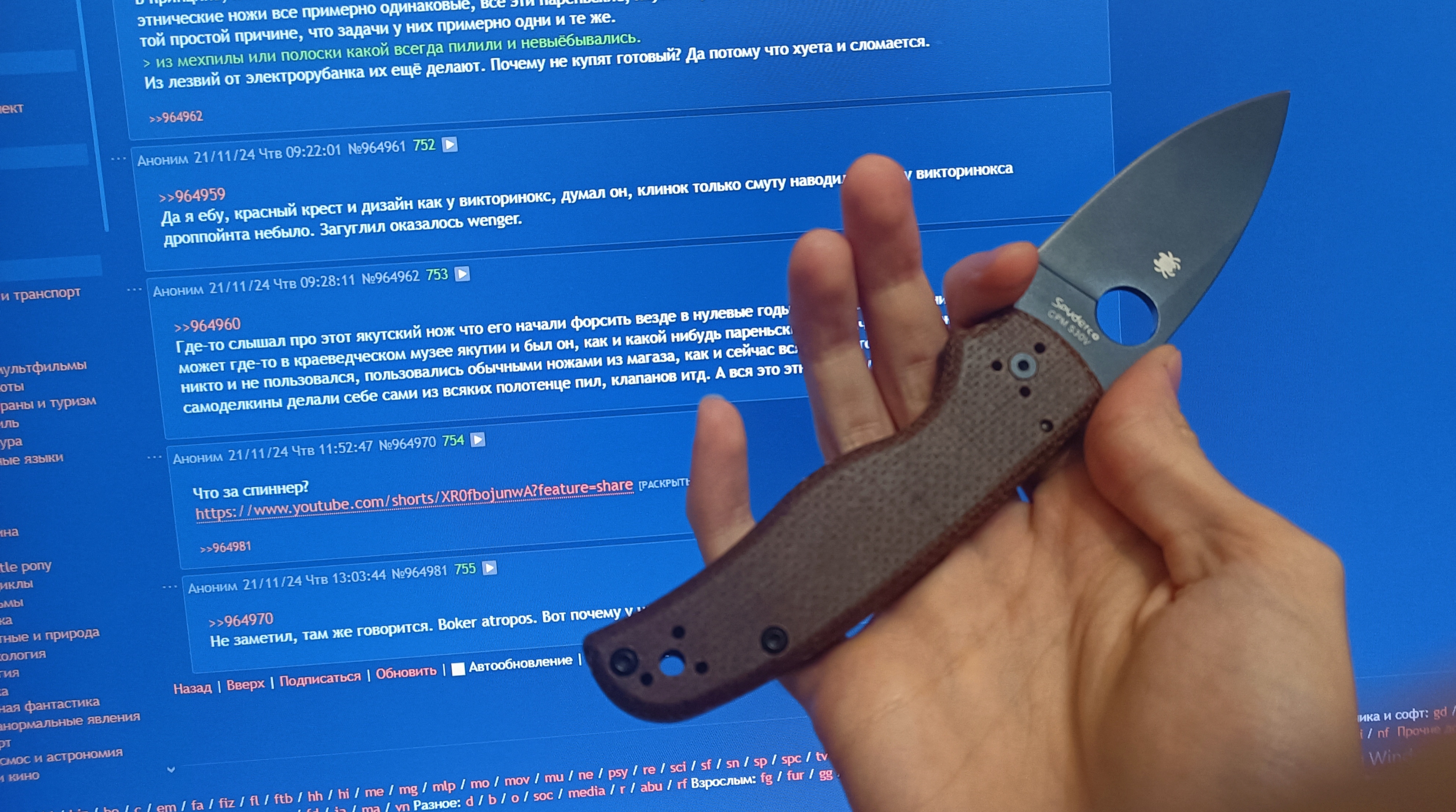 Почему большинство фоточек ножей в треде — разной степени уёбищности херня без задач с упором на эстетику, тактикульность и прочие свистопердельные аспекты? Я ещё могу понять людей, которые, к примеру, не купят какой-нибудь спайдерко из-за их уёбищно уродливого дизайна, но ведь это всего лишь инструменты, ими работать надо, а не рассматривать. Или ладно, если идёт речь о ебанутых коллекционерах ножей, собирающих всякое с сомнительной коллекционной ценностью, но тут вроде все пытаются приплести практический аспект очередного поделия. И какого хера большинство посетителей выставки выглядит как пик рилейтед? Крайне неуютно себя там чувствовал, как будто пришёл на фрик-конвент без костюма. Я понимаю, заядлые охотники и рыбаки могут подзадрочить на ножи, потому что они ими часто пользуются. Я понимаю поваров, которые могут задрочиться с ножами, потому что они их используют по 12 часов в день. Но блядь, нахуя белым воротничкам ножи, вот все эти модные соевые EDC для офисных работников с недостатком тестостерона? Бутерброды резать, что ли?