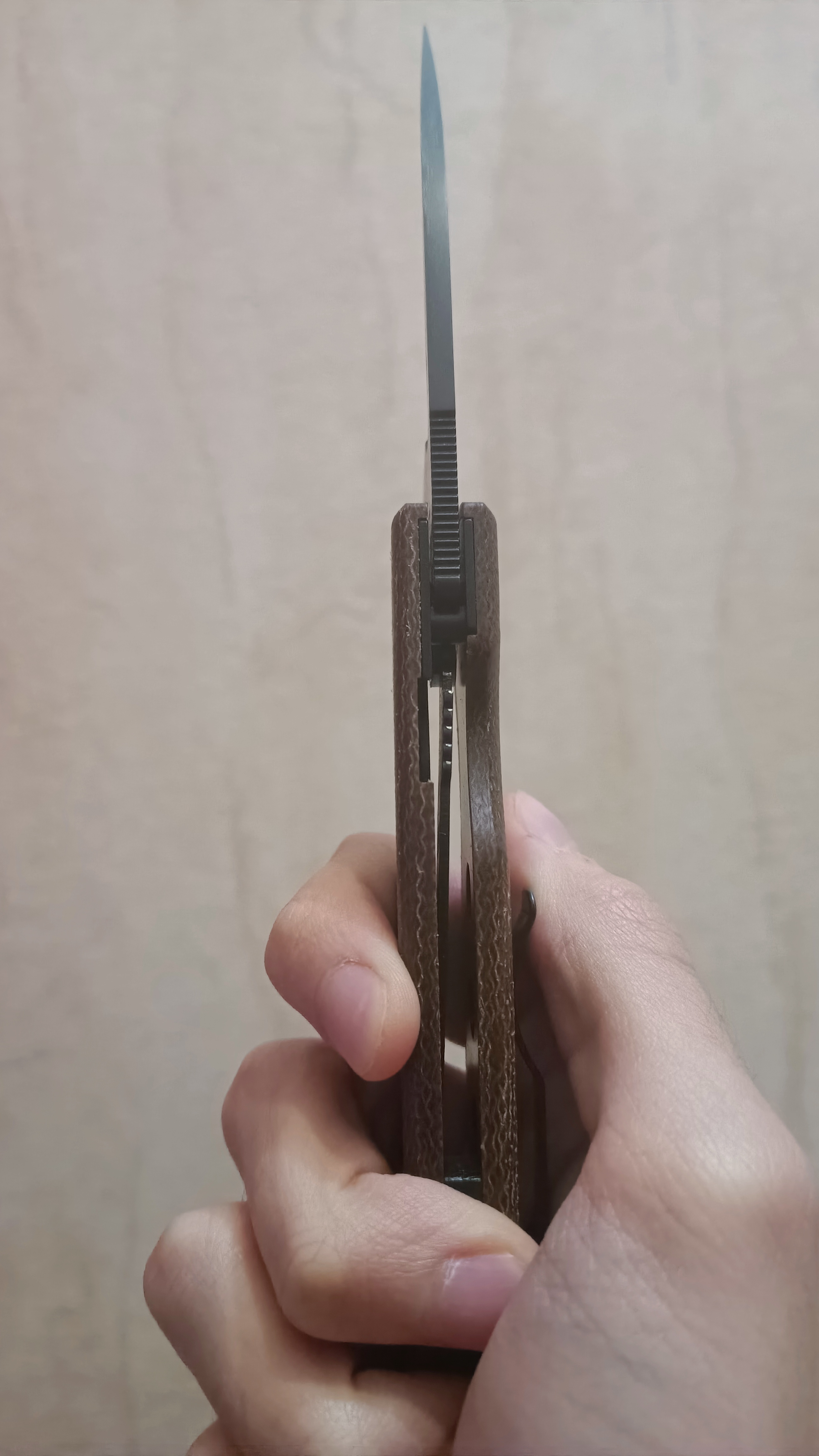 >>963495 Версия с G10. Керамический подшипник, всё отлично летает. Заточка из коробки лазерная. Острее у меня был разве что Socom от Green Thorn (Да, он острее оригинального). Разбирать не фронтальные поделия от антохи нет никакого желания, так как там всегда нормально так фиксатора набухано, так что будет без разбора, сорян.