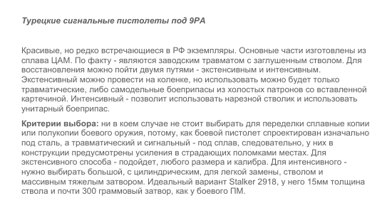 Кстати, кроме 4918 на рынке есть еще ОООП Смерч, тоже по низкой цене и с соответствующим качеством. Это очередной перепил холостого в травмат, вот только оригинал был в фул-авто. То есть холостой ПП. Интересно, как они конструкцию меняли чтобы он не мог стрелять очередями, а то ведь там селектор был.. Наверное если иметь и холостой и травмат можно селектор переставить и будет ПП травмат.