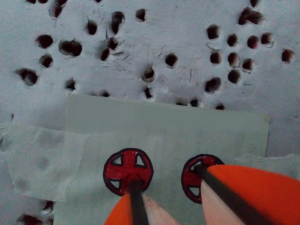 Наконечники - тренировочные, пулевидные. Вот когда в отмеченную красным область попадает стрела по касательной - она меняет свое направление с прямого на какое-то рандомное. Самое смешное было, когда я опер изолон на пластмассовое ведро и промазал по изолону, попав в дно ведра: стрела улетела вверх куда-то, отскочила от крыши бани и улетела в дровницу лол