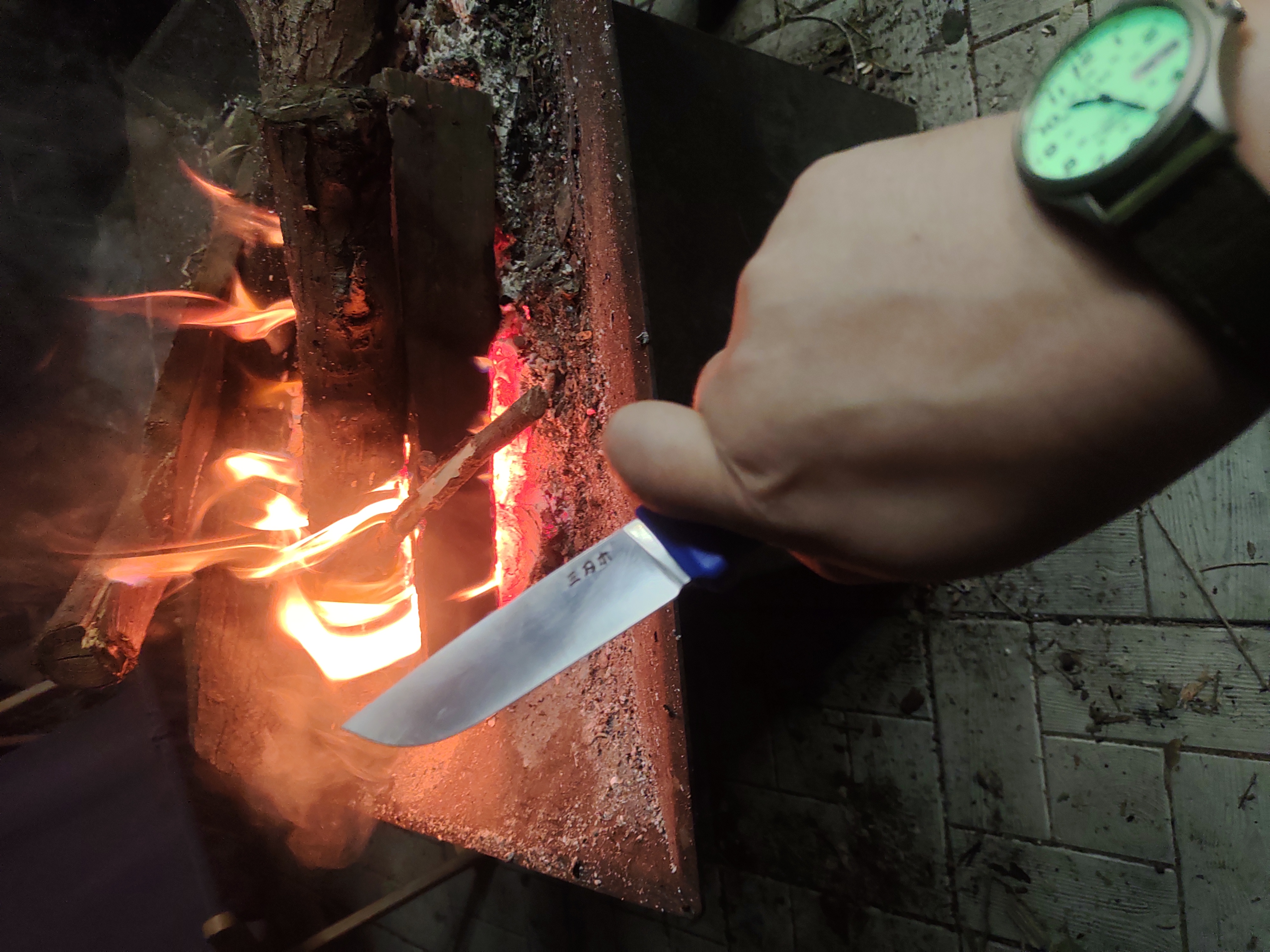 И вот ещё: сталь 9хф мгновенно ржавеет в коричневое или типа японских ржавеек потихоньку покрывается патиной? >Химический состав стали 9ХФ установлен так, чтобы сохранились преимущества углеродистых сталей и уменьшились их недостатки. Низкая прокаливаемость и чувствительность к перегреву. Для этого сталь легируют небольшим количеством марганца, хрома и ванадия >Благодаря лучшей прокаливаемости сталь 9ХФ выдает более высокую, а главное более однородную твердость в тонких сечениях и более мелкое зерно. >Бланк имеет зонную закалку на масло. В районе лезвия термообработан на твердость 62-64HRC, в районе обуха 40-50 HRC. Заготовка имеет два низких отпуска. Высокая твердость обеспечивает хорошую износостойкость при достаточной пластичности режущей кромки. Если вам необходима увеличенная вязкость клинка-положите бланк в духовку на 220 градусов или выше на 2 часа.