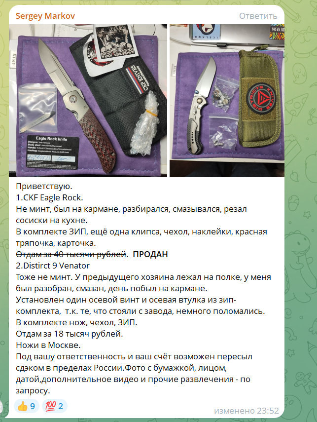 Из всего что было (а было много всего), до сих пор жалею что продал Бенча Контего лимитку; и потерял (или спиздили) старого, 2018го года Ульратыка на Елмаксе на дроппоинте.