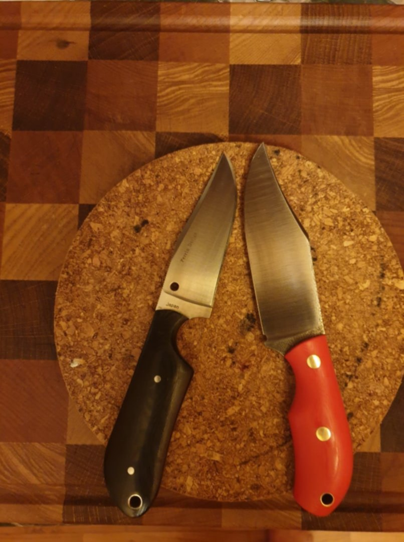 State of задротство. Взял попробовать санг дао от Tuotown из (китайской) VG-10 в ламинате, немного поправил сведение и подводы — точится как твёрдая сталь (~60), рк не выкрашивается. В целом норм для такого форм-фактора. Также взял пощупать Samura Butcher из АУС8ХроМоВ — помягче (~58), пп ручка удобная, сведён нормально, но подводы кривые, пришлось перетачивать. Тоже юзабельное изделие, если вам ехать, а не шашечки.
