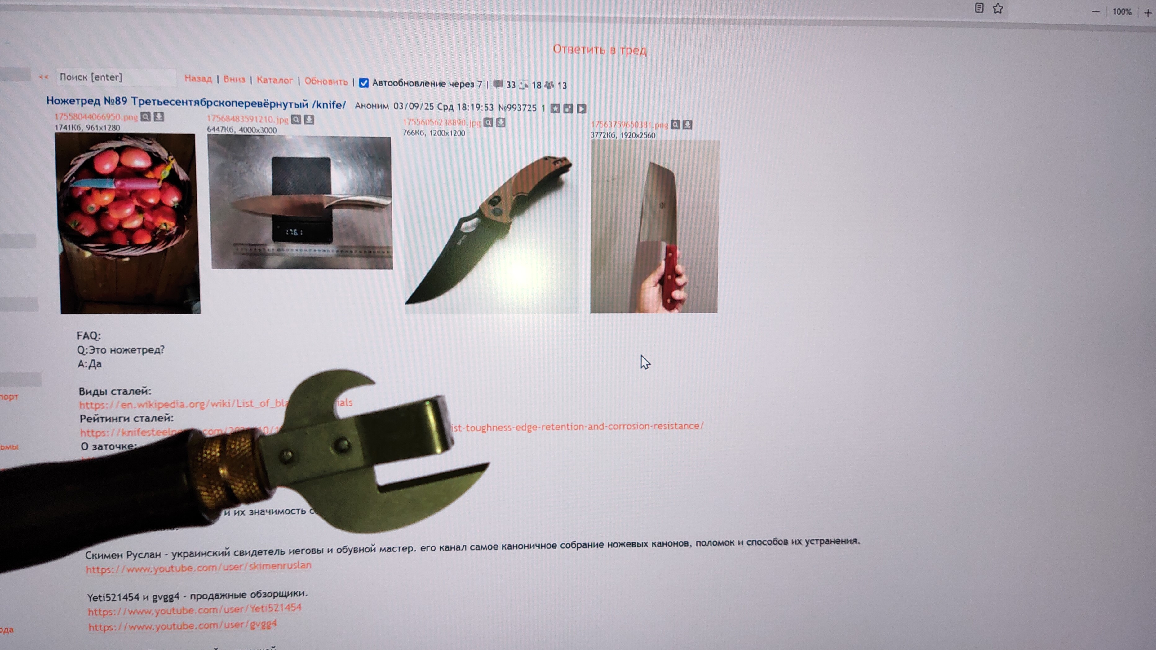 Vininull - самый лучший и уже самый мертвый канал, тесты на хард-юз - самое ценное, что дал ютуб ножевому сообществу. https://www.youtube.com/user/vininull