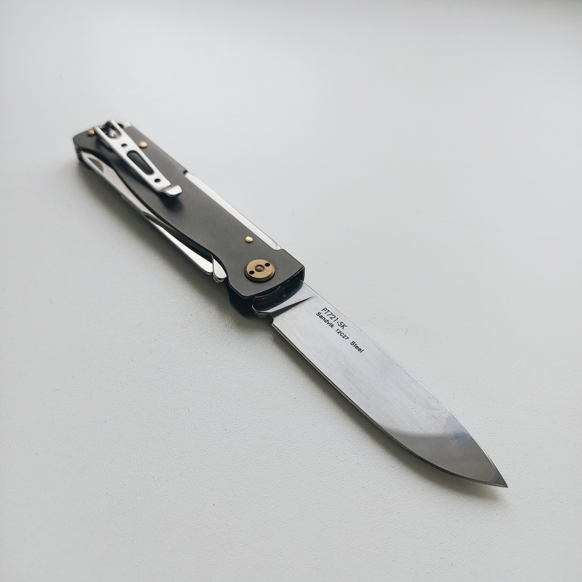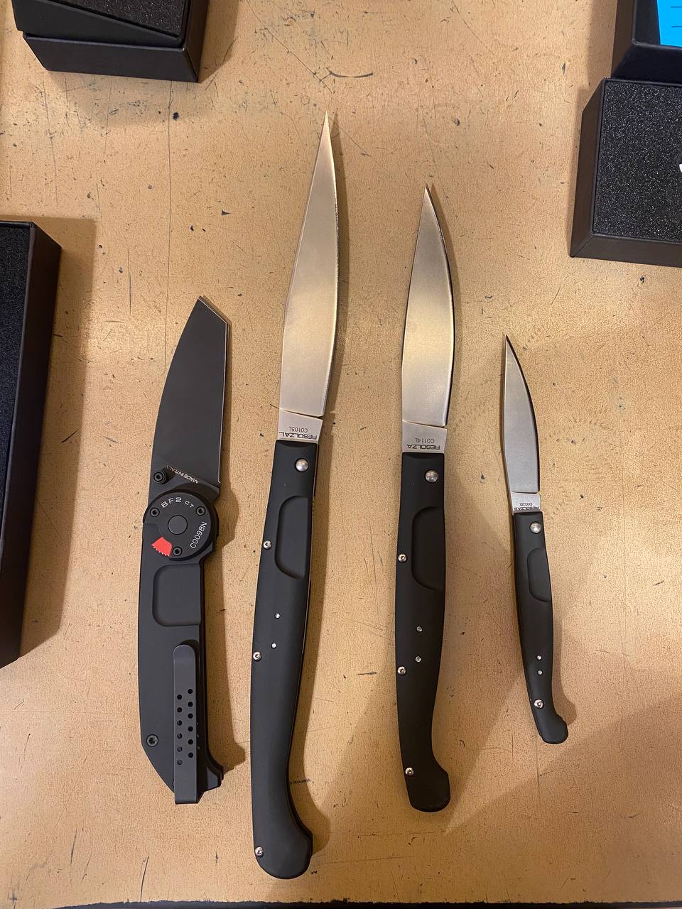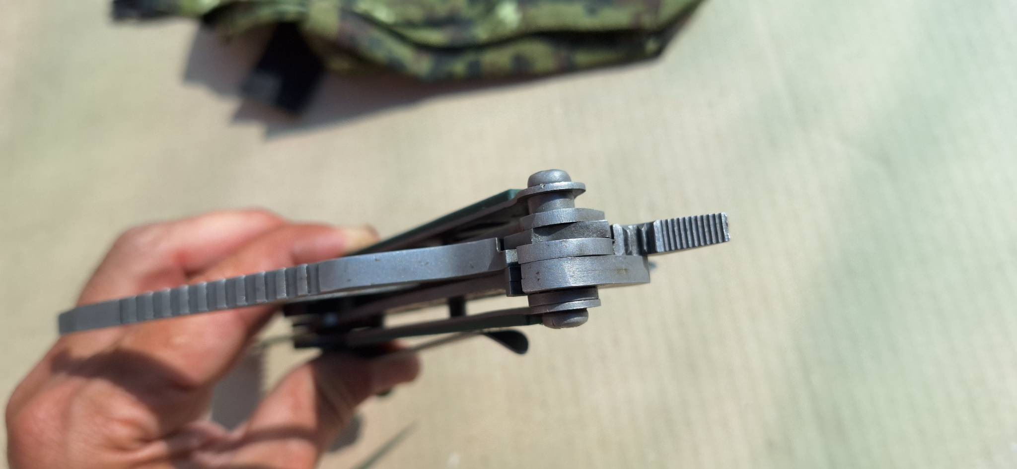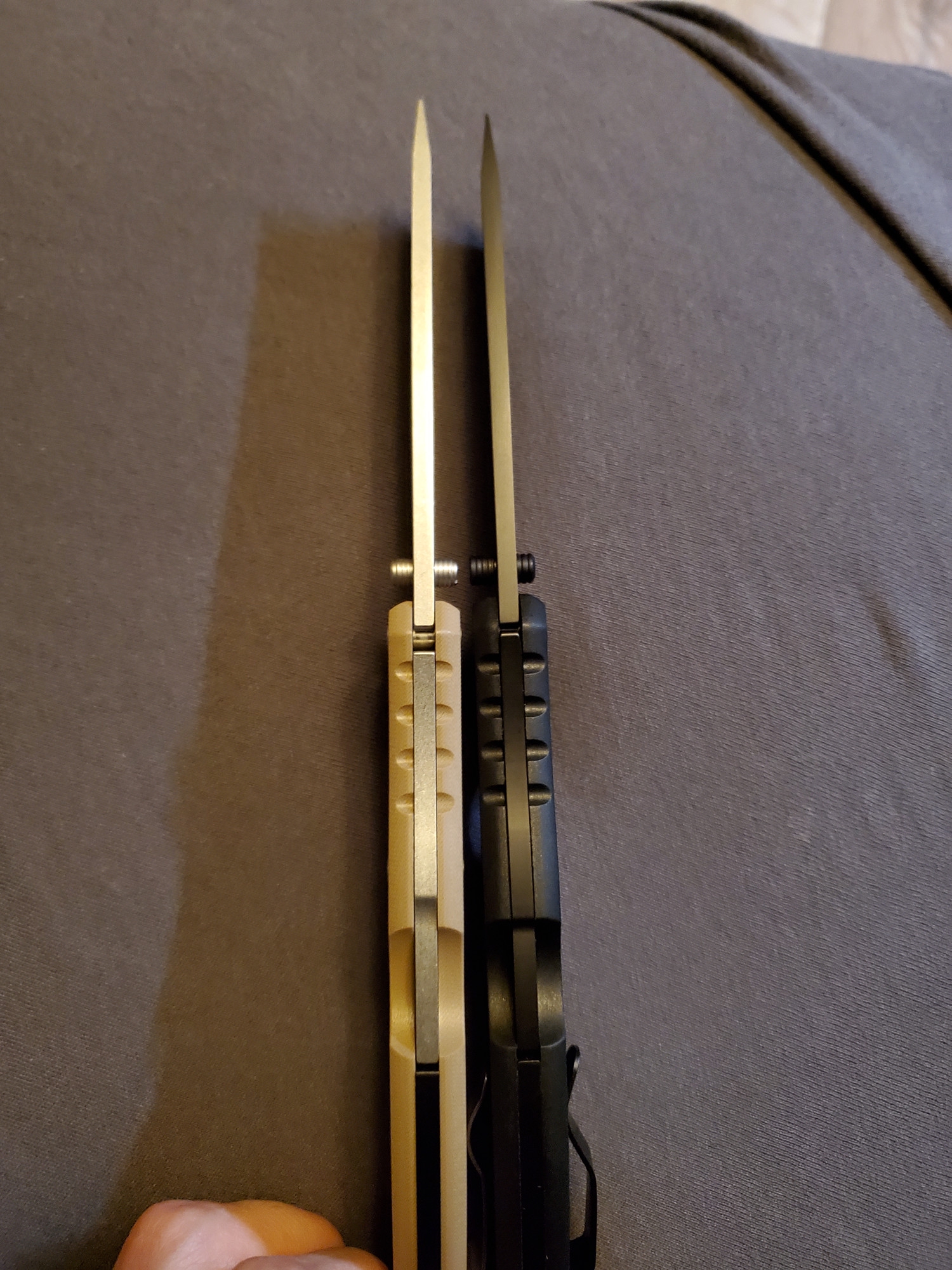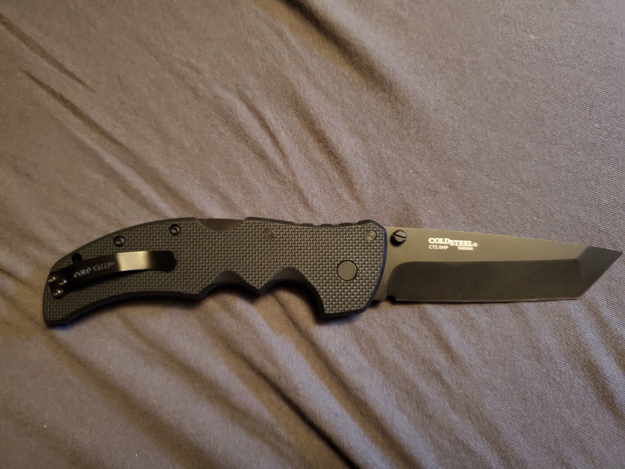 Пришел из Сан Антонио рекон в cts-xhp. В целом отношусь к модели нейтрально, с одной стороны охуенная эргономика рукояти, с другой - отвратительная механика из-за триадлока. Но увидев cts-xhp, который хуй найдешь, и цену в 65 баксов, возблагодарил жен продающих коллекции почивших мужей и купил. Резонно опасался что приедет паль. Особенности экземпляра: 1. На удивление гладкая g10, наощупь напоминающая пластик. 2. На удивление ровные, в меру тонкие, для колдстила подводы. Я хз, или повезло так, или паль, или бывший владелец переточил. 3. Коромысло триадлока с одной стороны сточено больше, чем с другой. Возможно это factory second? Люфтов нет. 4. Клипса это пиздец. Хуй отогнешь, лист бумаги пролезает с трудом. Наверное оригинал, лол.