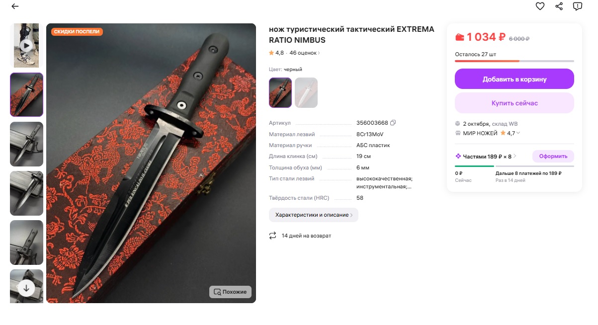 >>994568 > Нашёл на озоне пикрил реплику cold steel leatherneck Основной ножевой маркетплейс - вб, хотя и на озоне бывают некоторые эксклюзивы. Пикрил >Но разве холодняк на маркетплейсах так можно продавать? Температуру может определить только эксперт, а мы добросовестные покупатели и уповаем на то, что продавец не будет подставляться под уголовку и продавать кому попало холодняк Короче, бери, пока дают. Продажу телескопов на маретплейсах уже пофиксили