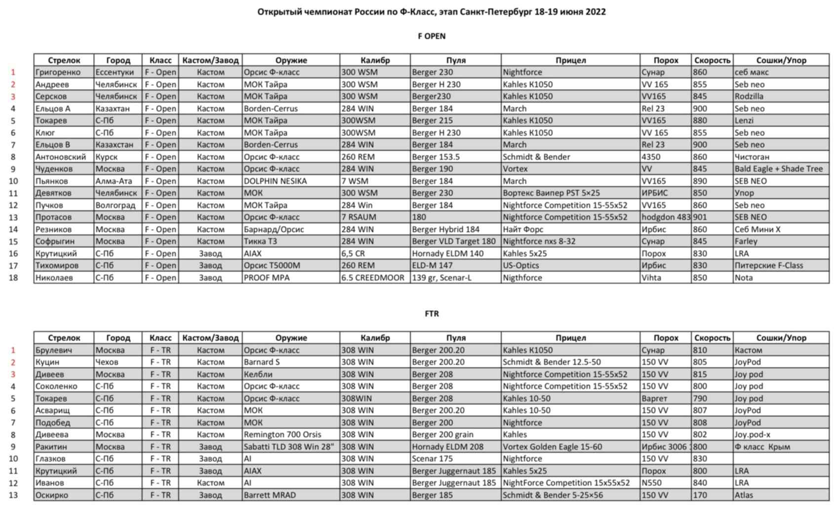Ну вот тебе соревнования 22ого года, можешь сам посмотреть какие калибры юзались "F-класс Россия" - это винтовки по миллиону, прицелы по 500к и всё такое. Отдых для солидных господ короче. Простому мимокроку там не рады