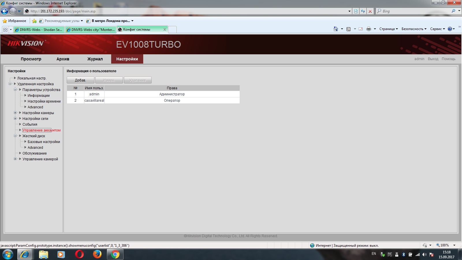 Я добавляю пользователя типа Operator, но у него не одна галочка remotePermission не стоит, поставить сам их не могу нет прав, хотя в вебпанель заходит, но делать там ничего не могу, немогу смотреть трансляцию, немогу смотреть записи, немогу подключиться через iVMS, не могу подключится через RTSP