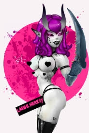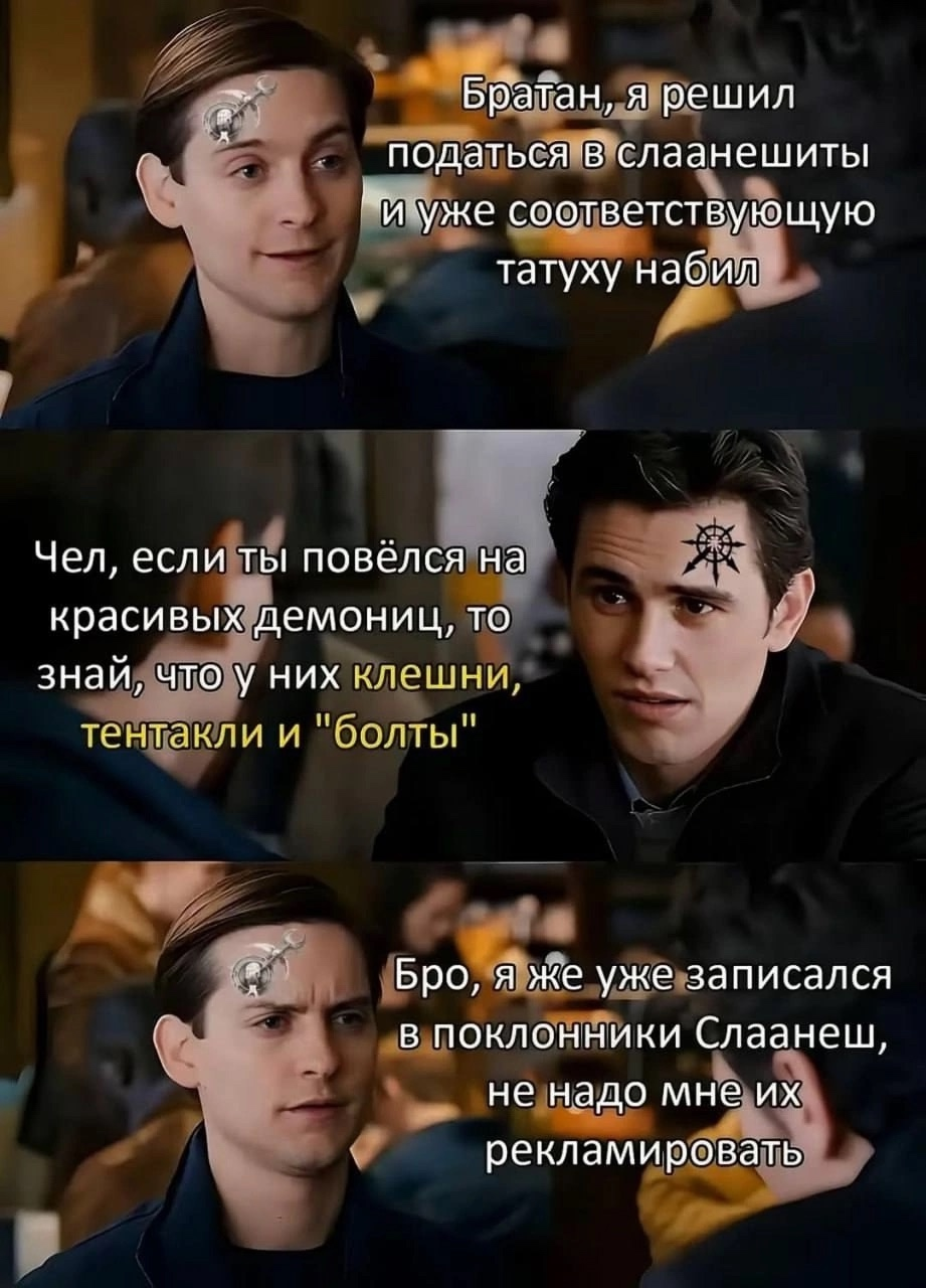 Ищу картинку которую когда то случайно удалил. Суть: Демонетка слаанеш стоит в центре и указывает пальцем на в ужасе убегающего гвардейца, в то время как её огромный мпх закрыт плашкой "Heresy". Самостоятельно найти не в силах, увы.