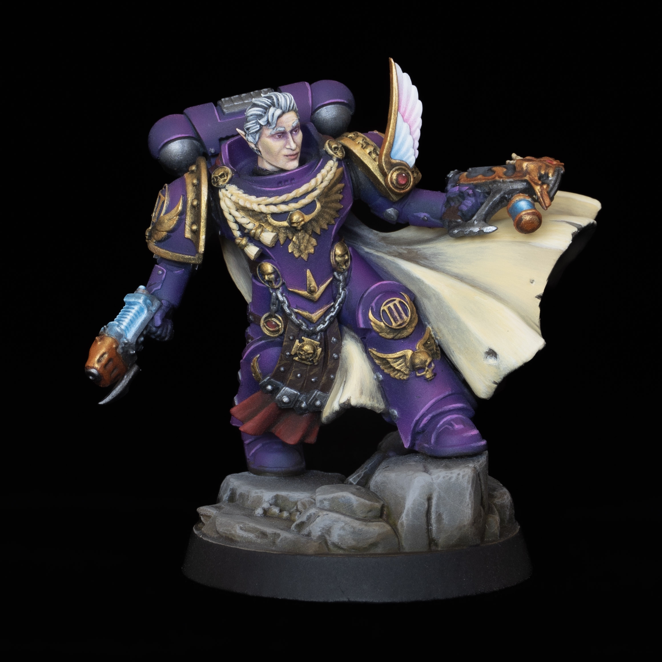 "Ветераны Клинка — неумолимые воины, неустанно продвигающиеся вперед с высоко поднятыми клинками — образ благородных рыцарей мифа. Члены элитной 1-й роты ветеранов своего ордена, каждый из этих очень опытных космических десантников сражался за сохранение Империума на бесчисленных мирах"