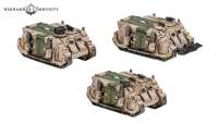 Переходим от пихотов к танчикам. Леман Руссы могут набираться по 10 штук, Ванквишеры имеют Armourbane трейт, который заставляет оппонента перебрасывать успешные сейвы на технике, суперхеви, рыцарях и титанах. Правда, Anti-tank-трейт Ванквишера снижает АП до 0 против пехоты и кавалерии; а хевиболтер, оказывается, Light-оружие, что не коцает танчики.