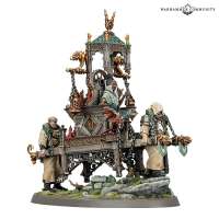 Неожиданно заявили о себе остальные миньки Вольных Городов. Понтифик Зенестра, Матриарх Великого Колеса, одного из культов Унберогена, что живут в лесу, молятся колесу как одному из аспектов Сигмара. Для этого культа колесо - символ вечной силы Сигмара, и ставить колеса на телеги суть есть святотатство. Поэтому она разъезжает на паланкине, на котором с обратной стороны приколочен скелет со шрамом, повторяющим такой же на лице старухи.