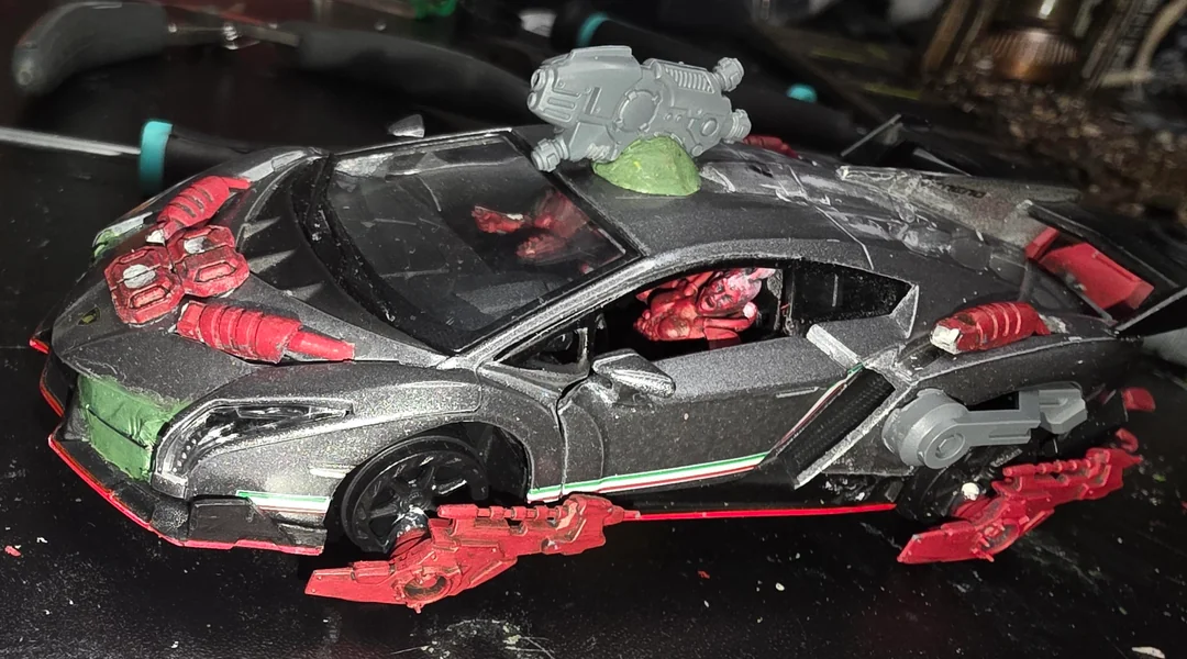 For in that long since past epoch of paradise, the clever contraptions of man would bolt past him on the streets, carry him into the heavens and dive under the sea, smooth as silk. Man's horseless wagon during the Dark Age of Technology was not only a marvel of engineering, but also a mass-produced luxury available to everyone, no matter how lowly and wretched they might be. Yet the sleek and fully automatized hover vehicles run by Abominable Intelligence have long since been replaced by rougher constructs handled manually by human hands, or even a regressed echo of self-driving in the form of vehicular servitors. The silent robotic traffic of yore has been replaced by an angry din of engines, protesting brakes and shouting drivers, all hurrying along in an aching rush through clouds of smog and exhaust.