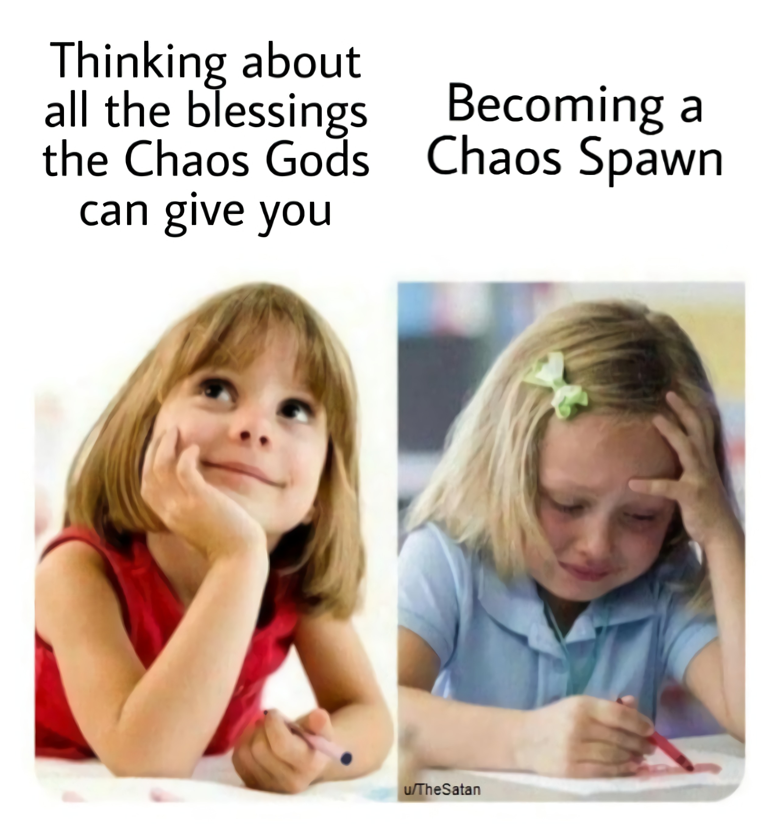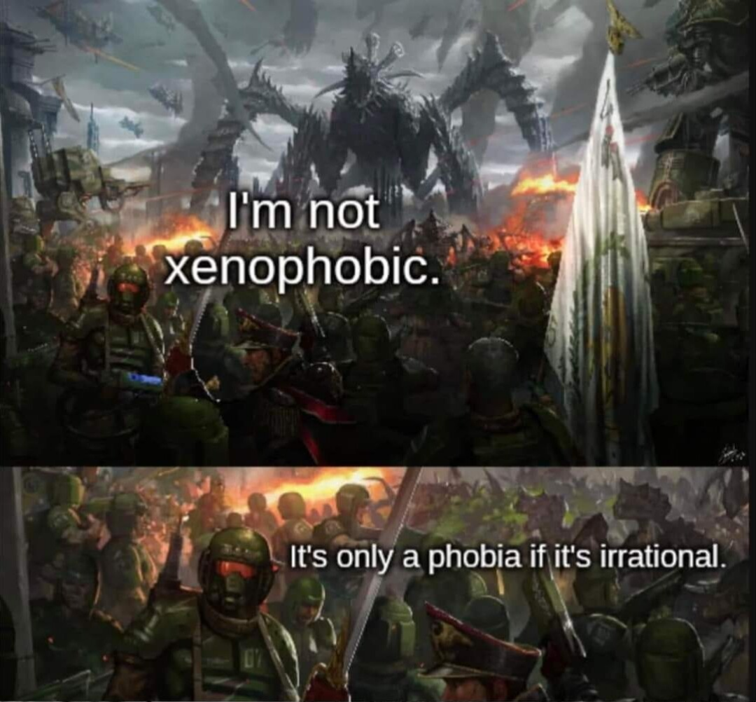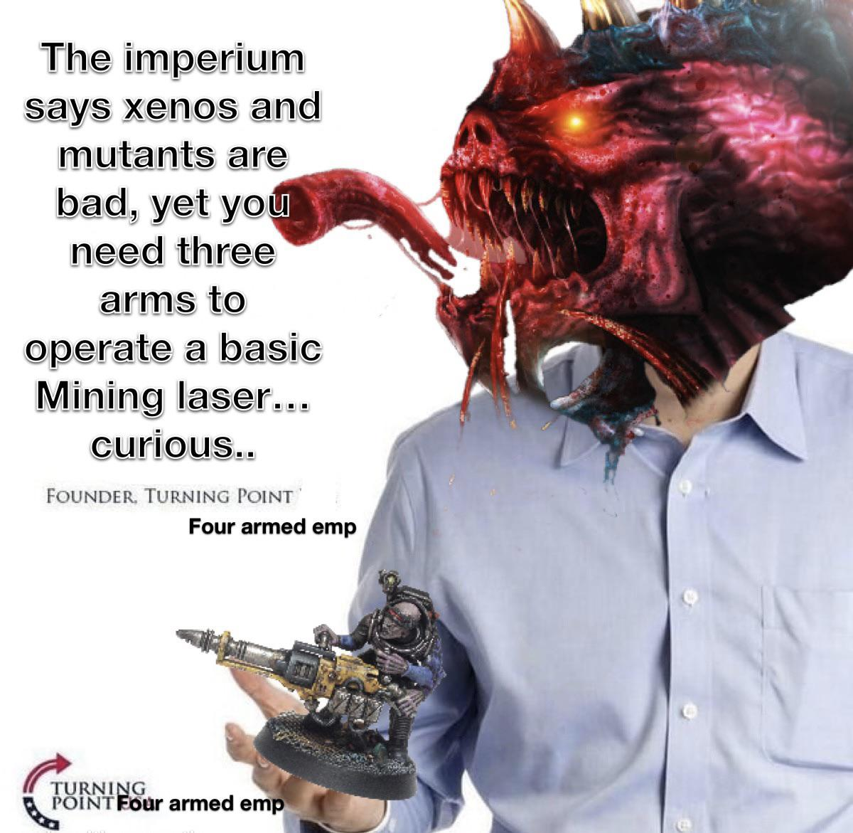 С точки зрения лоялизма, выбор очевиден, левое предпочтительно. Там, хоть и, возможно, слегка мутировавшие, но люди, ебут и убивают ксеносов; справа 100% ксеносы, обвешанные человеческими трофеями, доставшиеся им, вероятно, после уничтожения всех людей в зоне их досягаемости.