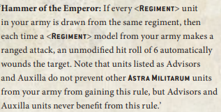 >>1124031 Любой из полков Старой Сотни. А если проще и шире, то которые берут свое начало из Сюлярной Ауксилии. Чисто за счет того, что там еще сохранились ересевые пулялы. Хотя если ты именно про настолку, то там это никак не отобразить, так что называй своих военов хоть Ягодицы Трампа, все равно ничего кроме положенного им не дашь.