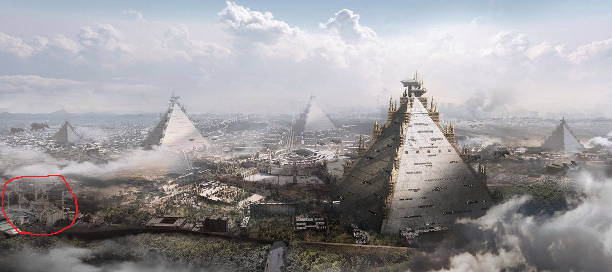 То есть это по сути то же пирамидальная хуйня, но она похожа скорее на холм, чем на шпиль пронзающий небеса до низких орбит. Его ширина всегда больше высоты, он окружен обычными городскими агломерациями с многоэтажками и заводиками. Природная среда достаточно мягкая, что бы какать вне защищенных помещений без вреда для здоровья.
