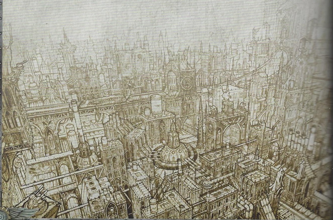 Расчехляем сакральный бек, про который знает 0,000001% вахаебов и авторов БЛ - секторальное устройство метрополисов и ульев. Почему это важно? Потому что несмотря на то, что в вахе может быть всё что угодно, более 85% миров Империума имеют хотя бы один город-улей, а ульи, многие из которых основаны ещё в доимперские времена, имеют общее устройство. Департменто Генусум выделяет следующие сектора городов-ульев: Сектор Периферус (прилегающие к внешним границам улья территории), Сектор Империалис (основные уровни улья), Сектор Механикус (средоточие тяжелой промышленности и владения адмехов), Сектор Спирум (шпили знати), Сектор Хабкулум (жилые хабы), Сектор Инфернус (одинаково применим к подулью и заброшенным подземным конструкциям пустошей).
