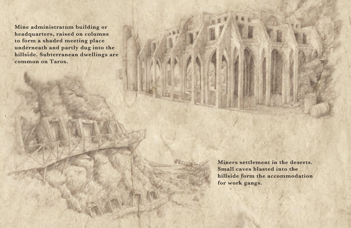 Сектор Империалис – это угрюмое и тягостное место. Многие сооружения и объекты инфраструктуры несут на себе отпечаток времени, среди обветшалых зданий встречаются покинутые руины. Нередко аварийные здание рушатся во время бесконечных рабочих смен прямо с работягами внутри. Если обрушившееся сооружение выполняло важную роль (например, производило химикаты для снабжения целой цепочки сложных производств), то рано или поздно явятся имперские агенты соответствующего профиля, которые постараются решить, как можно вернуть процесс производства. В противном случае руины останутся на разграбление бесчисленным мусорщикам, скрывающимся в лабиринте труб.
