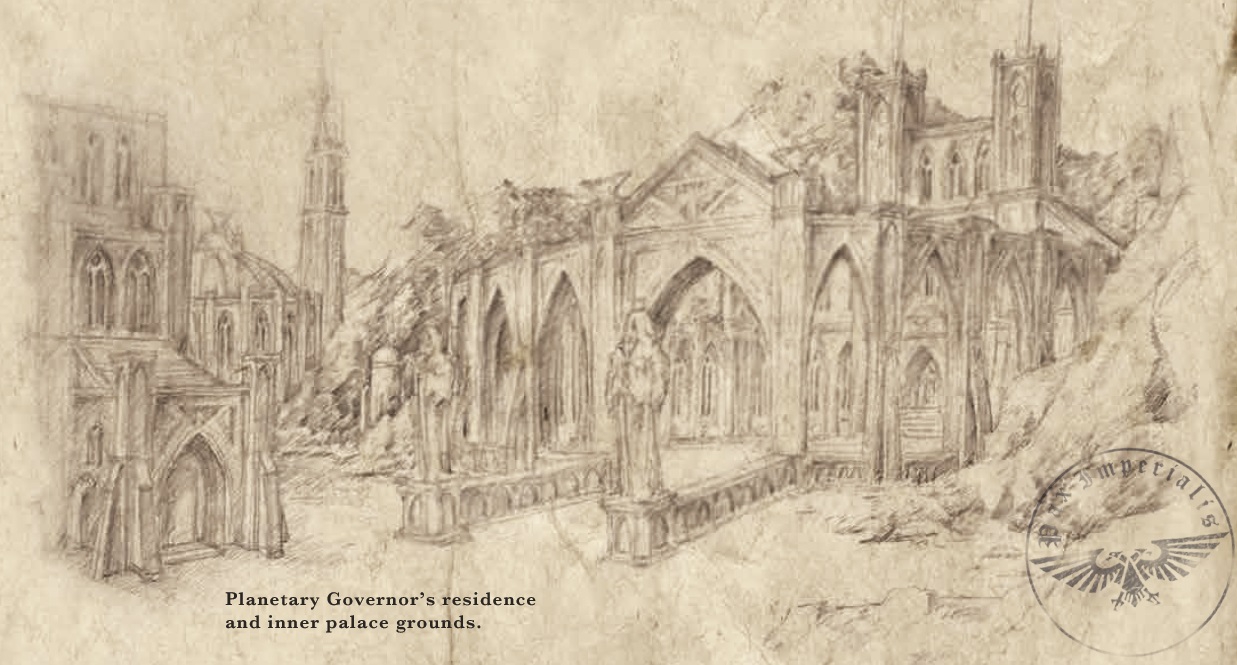 Сектор Империалис состоит из множества зданий, подавляющее большинство которых выполнено в одном классическом архитектурном стиле, который Империум перенял – обширной и мрачной готике. В плотной застройке типичного Сектора Империалис вы всегда найдете следующие здания: администратумы, базиликанумы, санктумы и мануфакторумы.