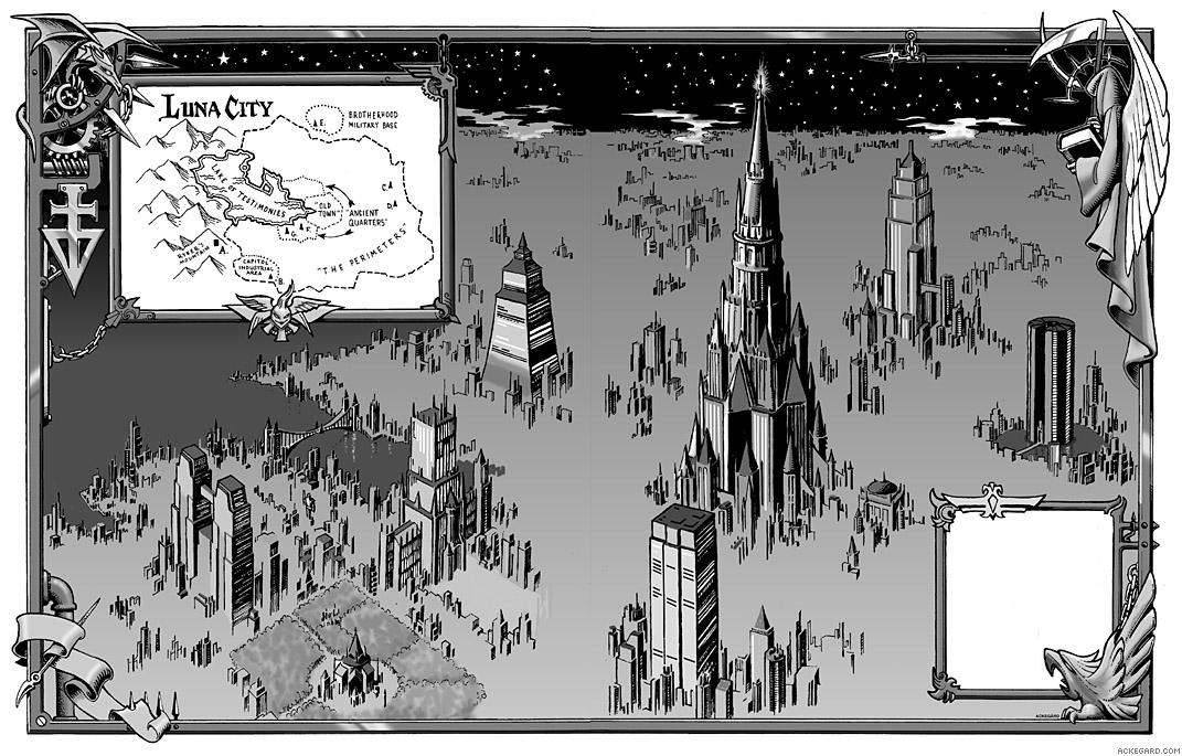 Ну если следовать духу бэка, то это должен быть город мегахрущовок, переходящих в шпили, и заводов, всё отделанное под готические соборы. Люди где побогаче живут в собственных апартаментах 15м2, где победнее живут как таджики помногу на нарах. Заводы из англии начала 19 века, транспорт исключительно общественный, личный транспорт -большая роскошь.