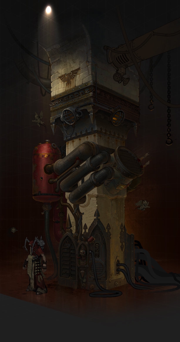 СЕКТОР МЕХАНИКУС Техножрецы могут консультировать мануфакторумы Сектора Империалис и даже могут помогать Администратуму запускать их, но к по-настоящему тяжелой промышленности последователи Бога-Машины нечасто допускают посторонних. Она расположена в Секторах Механикус, состоящих из запутанных слоев машинерии. Большинство оборудования здесь доимперской эпохи – архаичные образцы Темной Эры Технологий. Независимо от того, древние они или недавно построенные, все машины почитаются как божественные. Назначение многих из этих машин давно забыто или окутано загадочными ритуалами, но каждая подлежит омовению священными смазками и они разбираются и собираются обратно в святых церемониях. Секторы Механикус очень различаются по размеру. Термин может относиться к индустриальным комплексам внутри улья, возможно покрывающим десятки миль, либо Сектором Механикус может быть сам улей – огромный конгломерат машинерии и трубопроводов.