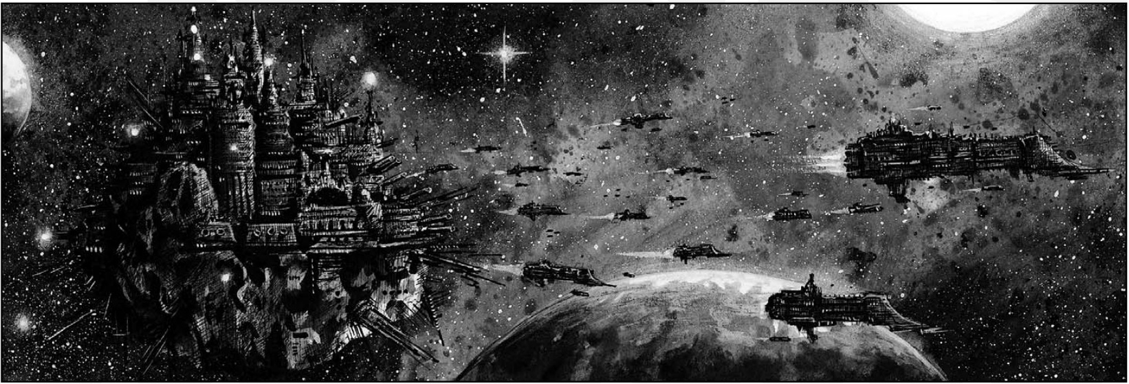 >>1082308 > Так, подожди. Помимо кораблей дизайна ВКП (хаоситы в м40) и имперского дизайна пост-ВКП, был ещё какой-то дизайн? Можете пиктов скинуть? Да вот, древняя древность. Щиты (кораблик со сферами) приходилось возить на отдельном корабле, но он прикрывал на бОльшую площадь. Я не помню, но тот анон подсказывает что вторая редакция. Это до-ВКП дизайн, мельком упоминается где-то что давно списаны/переоборудованы.