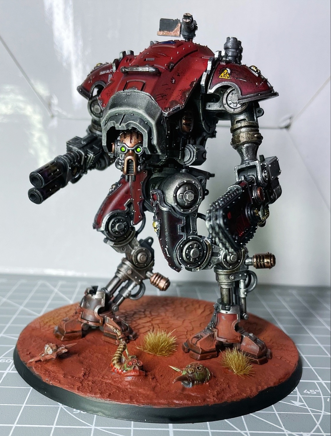 >>1064750 • мало высветлений на красном • неаккуратные грязные черепа • почему-то стальной декор на башке, когда везде угодная Кхорну медь • невнятные проливки на туше/ногах из стали