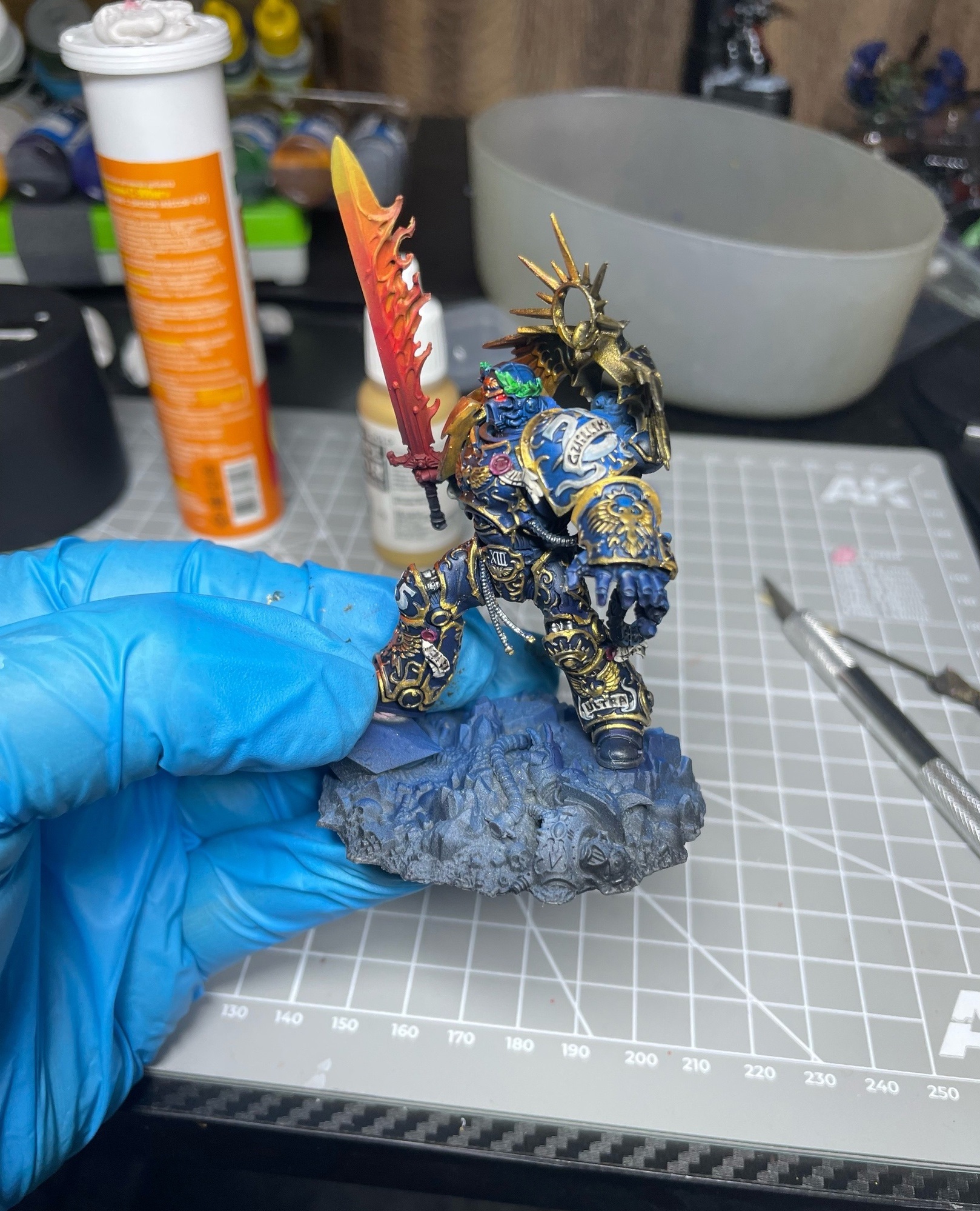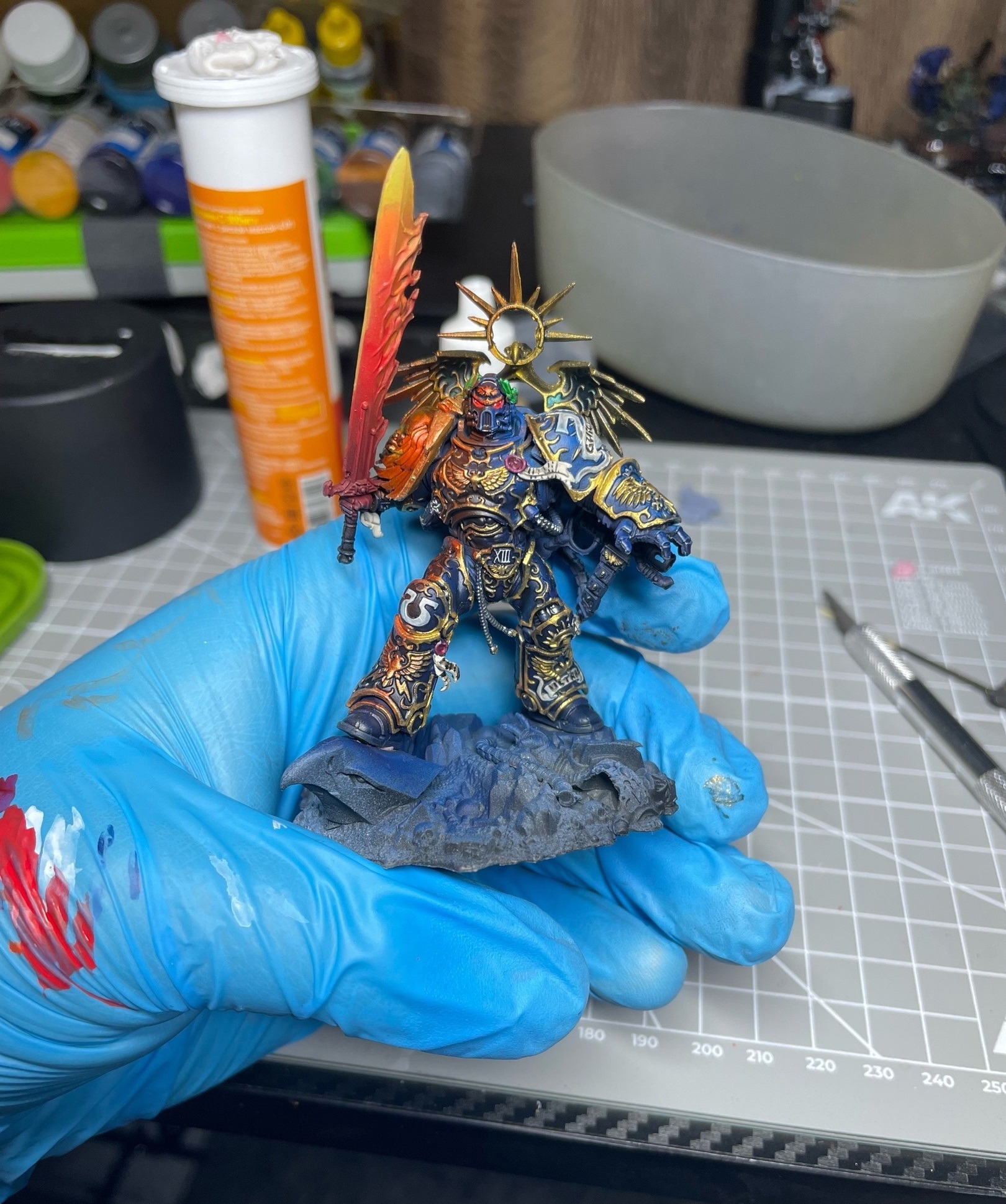 >>1065379 спасибо цветные детали красил аэром, поэтому толком хайлайты не делал (первый раз, кстати, пользовался аэром) проливки, которые юзал - нулн оил, шейд спейсшип от аммо миг и агракс эрчшейд. металлик, кстати, базовый слой - экстрим метал от ак, через аэр, поверх серебряный от цитадели и еще какой то бюджетный металлик оил стил. Вот.
