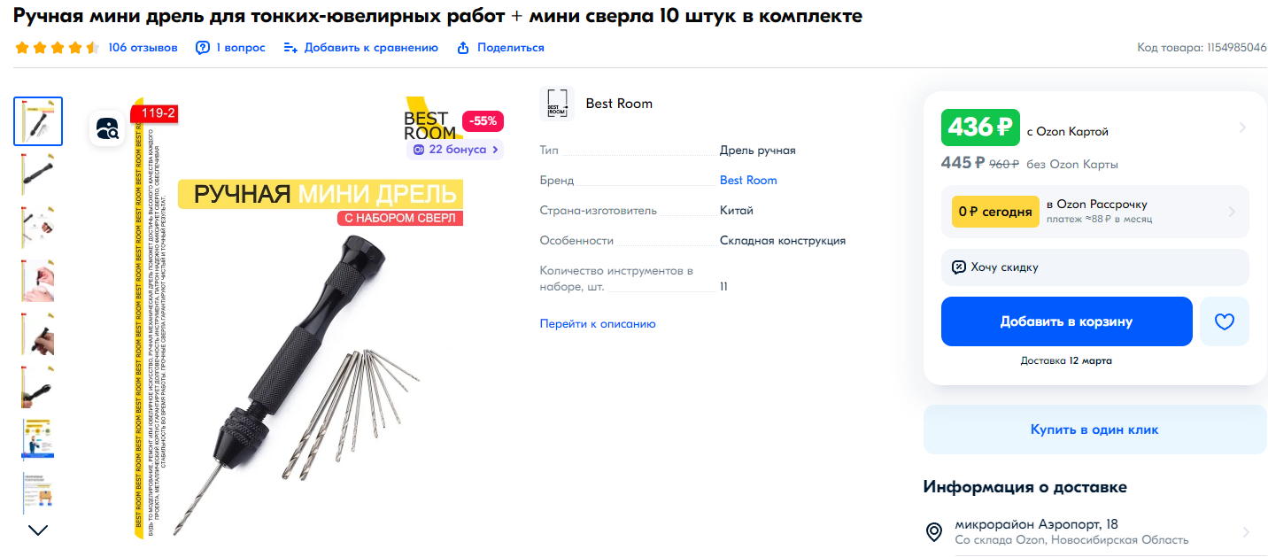 >>1083943 Даже дешевле. По сути одна и та же китайская дрель в разных магазинах. В лавке орка ее еще продают с небольшой наценкой, помимо своей фирменной. >>1083923 Можешь дрель в магазине радиодеталей посмотреть, если доставки не хочется ждать.